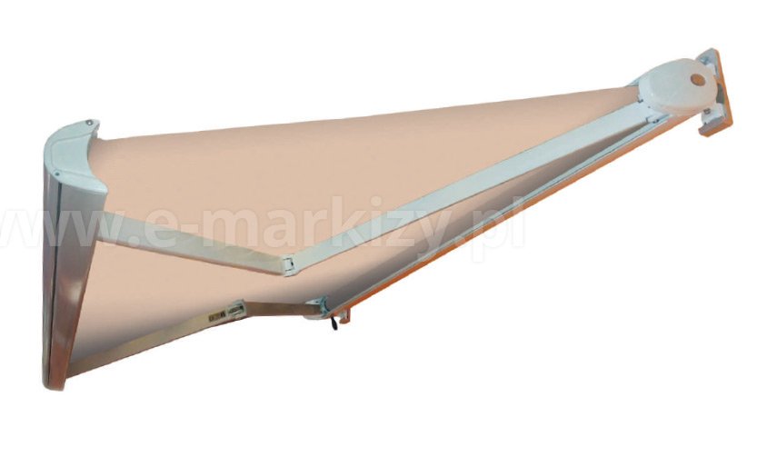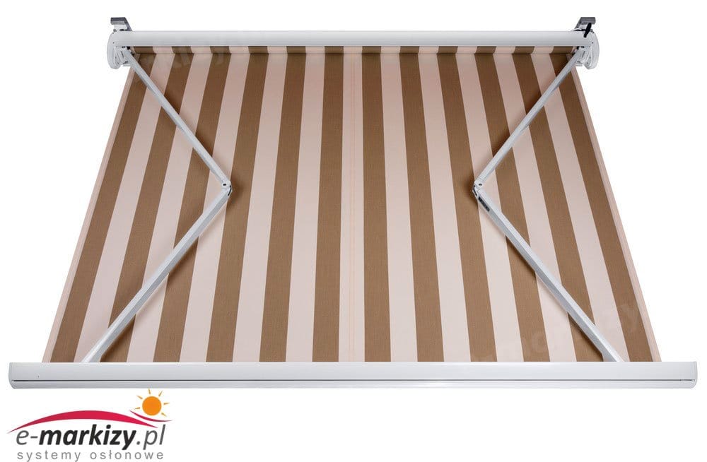 Maksymalna szerokość to 5,4m a wysięg to 3m. Markiza posiada pełną kasetę, która chroni tkaninę i ramiona z każdej strony.
