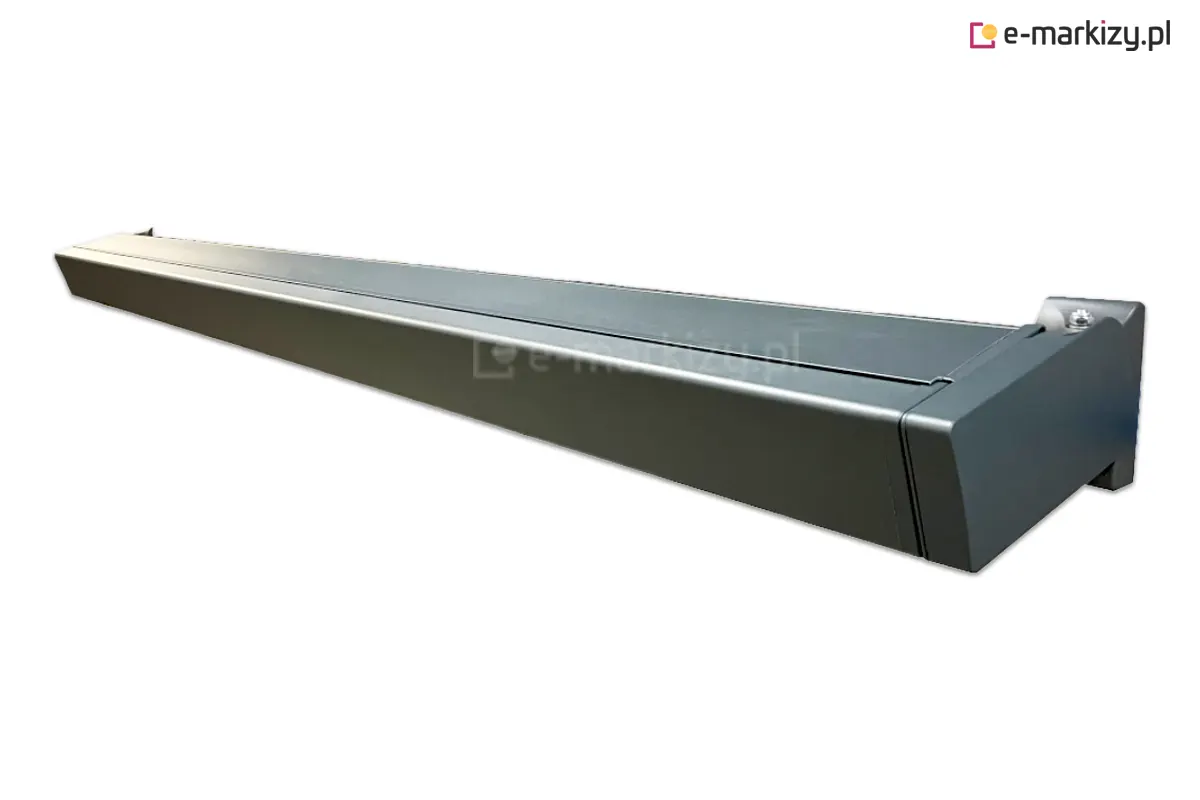 Markiza Tarasowa Quadra Mol wyposażona jest w kasetę o nowoczesnym, przyciągającym uwagę designie. Prostokątny kształt idealnie przylega do powierzchni ściany lub sufitu, co ułatwia montaż. Markiza występuje wyłącznie ze sterowaniem elektrycznym. Opcjonalnie możemy zamontować napęd elektryczny z awaryjnym otwieraniem korbowym, a także dobrać automatykę i oświetlanie led.
