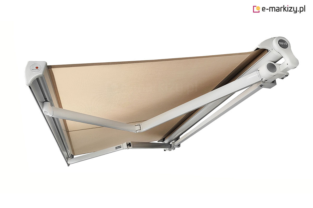 - Za dopłatą markizę możemy doposażyć w silnik elektryczny, który automatycznie zwija markizę. Silnik ten dostępny jest także w wersji z awaryjnym otwieraniem, czyli dodatkową korbą pozwalającą sterować markizą manualnie