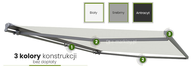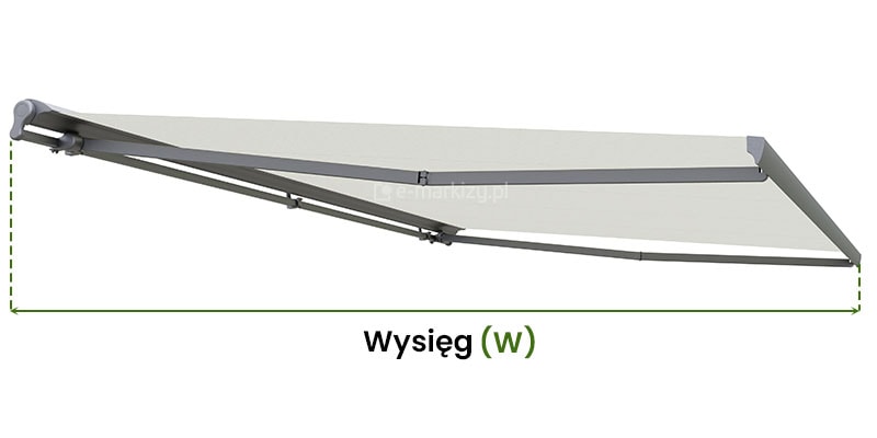 Markiza Tremolo MOL posiada dwa główne wymiary na podstawie których robiona jest wycena. Pierwszy to całkowita szerokość markizy, a drugi wysięg markizy (wysuw). Wymagane wymiary podawane są w cm, norma produkcyjna przewiduje tolerancję wymiarów szerokości -/+ 2cm. W zależności od szerokości całej konstrukcji, producent przewiduje inną ilość uchwytów mocujących. Wysokość konstrukcji zależna jest od wybranego modelu i nie wpływa ona na cenę. Instrukcja pomiaru markizy tarasowej przedstawiona jest na obrazku obok.