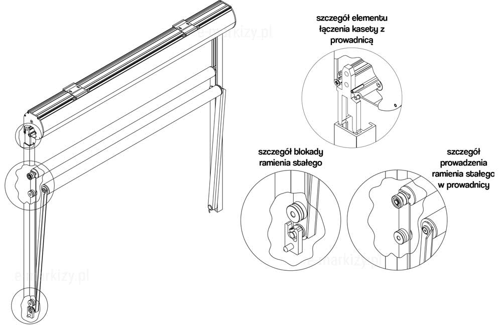 Markizoroleta 103 - Dane Techniczne - Markizoroleta 103 Komponenty, belka górna, klipy montażowe, belka dolna, ramię rolety, prowadnica listwowa, Markizoleta 103 wymiary boczne, jak mierzyć markizoletę, markizoleta kąt pochyłu, markizoroleta kąt pochyłu, Markizoleta 103 montaż wnękowy gc30, sklep e-Markizy, Markizoleta 103 montaż wnękowy gc30f, sklep z roletami, markizoleta dane techniczne, Markizoleta 103 Selt montaż modułowy sposób pomiaru przed zamówieniem, Markizoleta 103 szczegóły konstrukcji, markizoroleta dane techniczne, łączenie kasety z prowadnicą, ramię stałe, blokada ramienia stałego, Markizoroleta 103 przekroje, kaseta rolety, belka dolna, prowadnica, rura nawojowa ocynkowana,