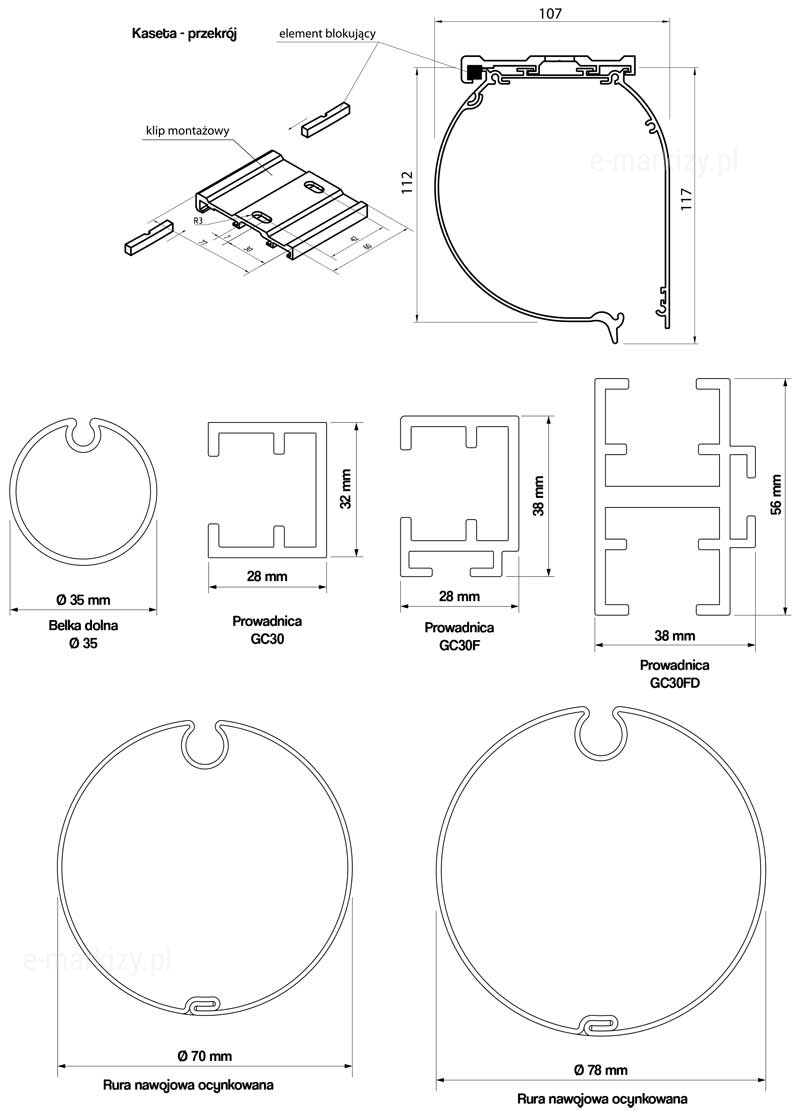 Prowadnice: GC30; GC30F; GC30FD(samonośny)