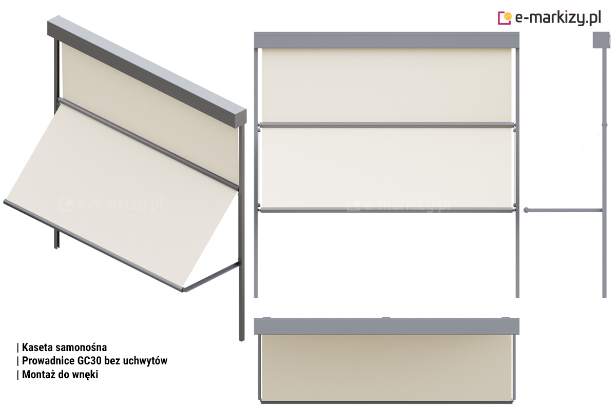 Markizoleta 120 do montażu wnękowego, ściennego lub fasadowego może zostać wykonana w różnych wymiarach. Maksymalna szerokość osłony to 3,5m, a wysokość 4m.