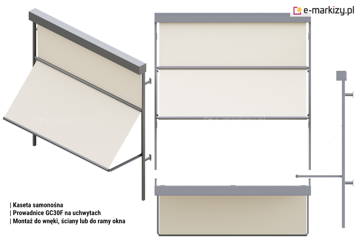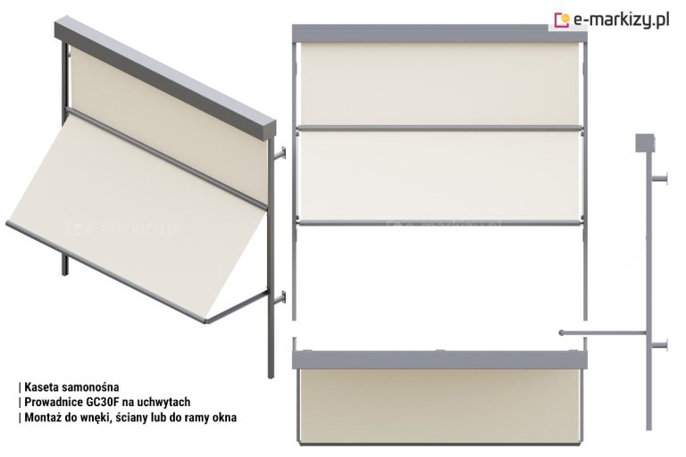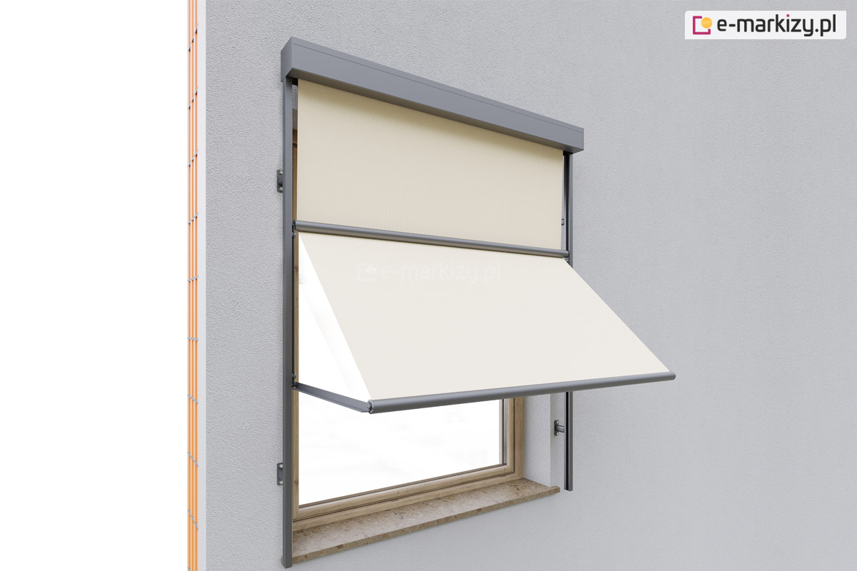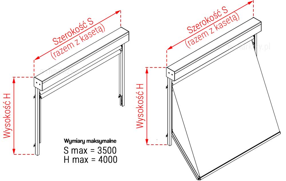 Markizoroleta 120 produkowana jest na wymiar. Maksymalna szerokość to 350cm a wysokość to 400cm, Do zamówienia lub wyceny podajemy zawsze całkowity zewnętrzny wymiar osłony, łącznie z kasetą.