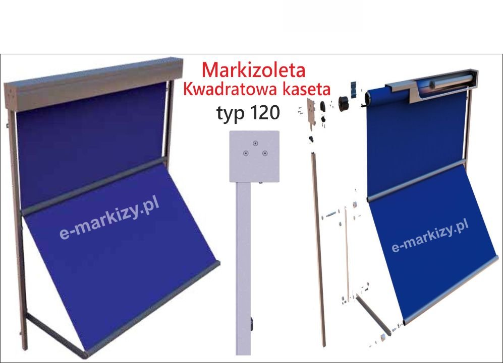 Markizoroleta 120 to system kasetowy łączący funkcje rolety oraz markizy. Prowadnice i kaseta rolety wykonane są z ekstrudowanego aluminium. Rewizja systemu dostępna jest od przodu kasety. Specjalne ramię tworzące kąt pochylenia 90°-135° chroni przed nasłonecznieniem, a otwarcie części markizowej zapewnia dobry widok na zewnątrz. Dostępny jest wariant samonośny. Refleksol markizowy standardowo wyposażony jest w sterowanie elektryczne.