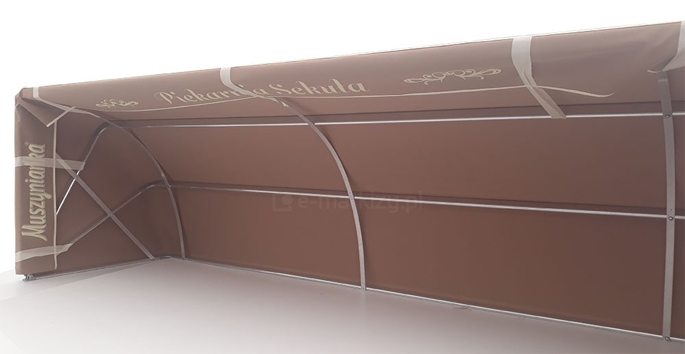 - Funkcjonalność – osłona przed słońcem i deszczem poprawia komfort klientów, a także pracowników obsługujących przestrzeń na zewnątrz.