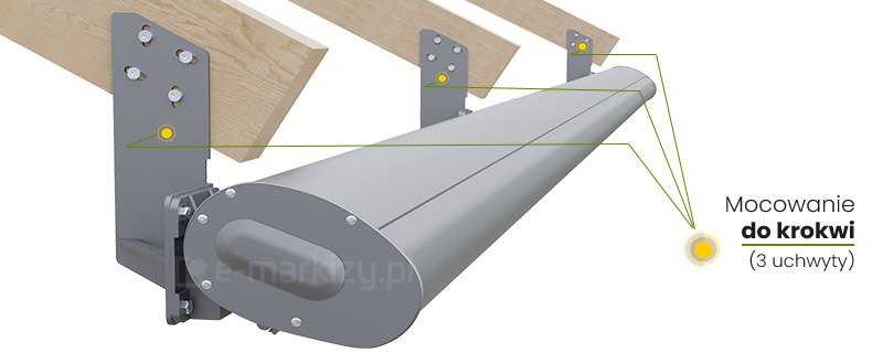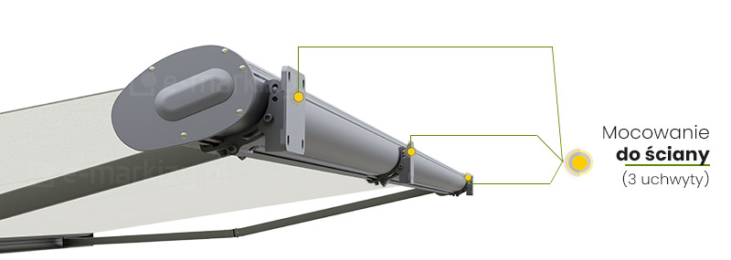 Standardowa ilość uchwytów mocujących (od 2 do 3) zależna jest od szerokości markizy.