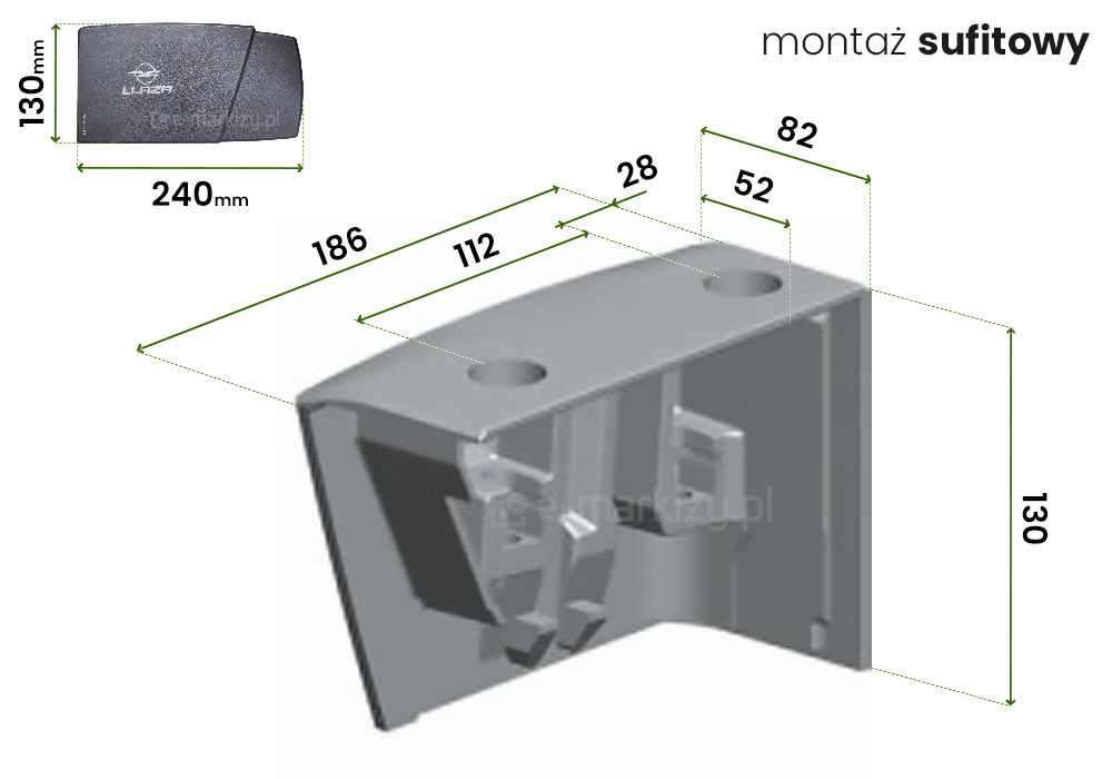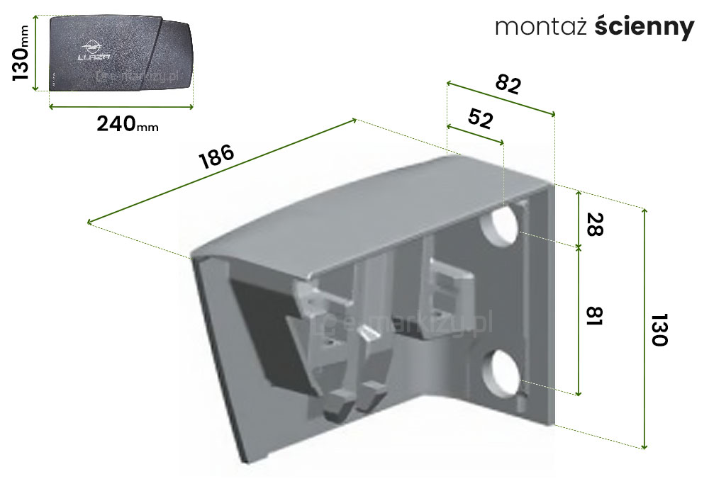 Montaż markizy Moderno: Markiza jest już w całości skręcona i wyregulowana. Markizę standardowo posiada wsporniki uniwersalne stosowane do montażu ściennego lub sufitowego. Montaż markizy w zasadzie jest bardzo prosty i ogranicza się właściwie do zamocowania uchwytów np. na ścianie. W razie potrzeby możemy również dowolnie ustawiać kąt pochyłu. Markizę możemy również przymocować bez żadnego problemu do ściany ocieplonej np. styropianem, nawet do grubości 20cm. Produkt przeznaczony jest do samodzielnego montażu.