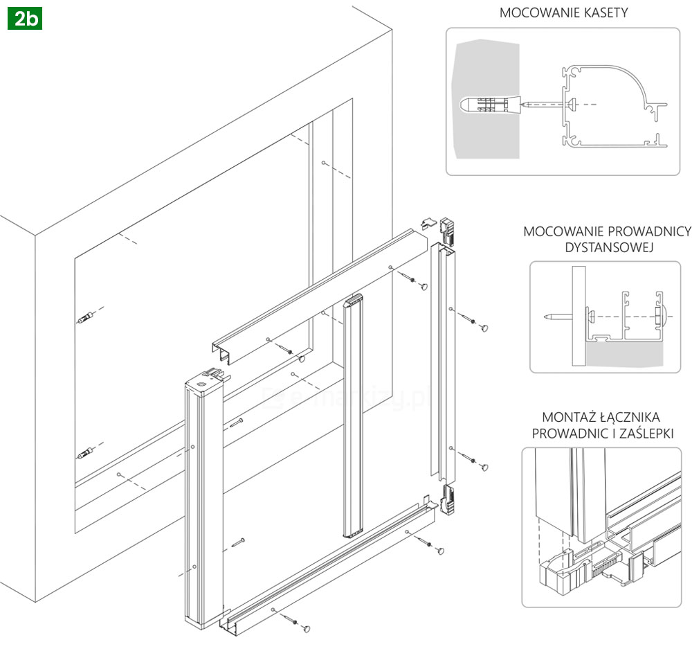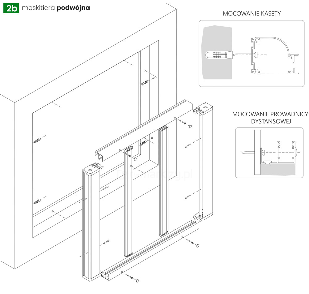 2b. Montaż moskitiery do wnęki, ramy drzwi lub ściany. Prowadnica dystansowa