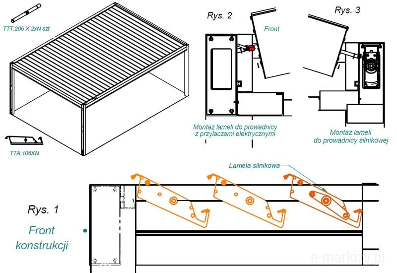 15. Zamontować lamele tta.106 do prowadnicy tta.101 na trzpień ttt.206.