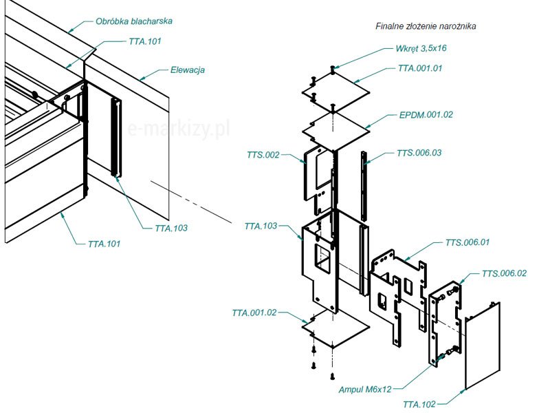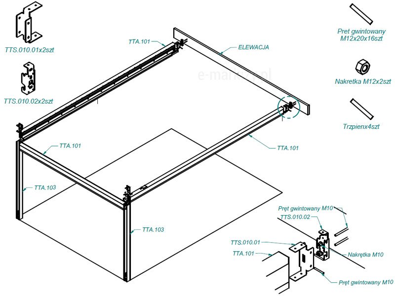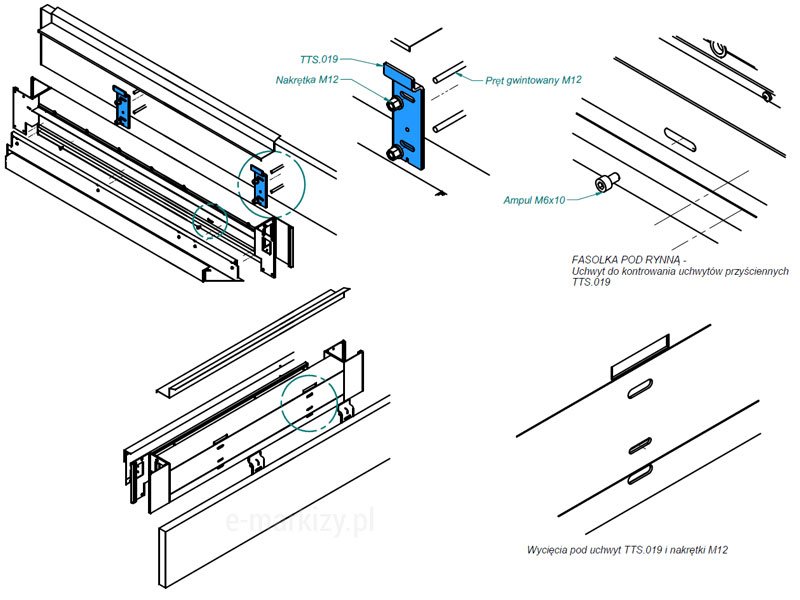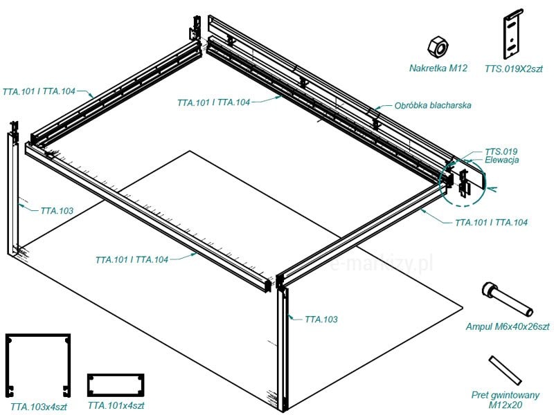 10. Zamontować prowadnice tta.101 do profili tta.103 oraz blachy wypelniajace tts.002.