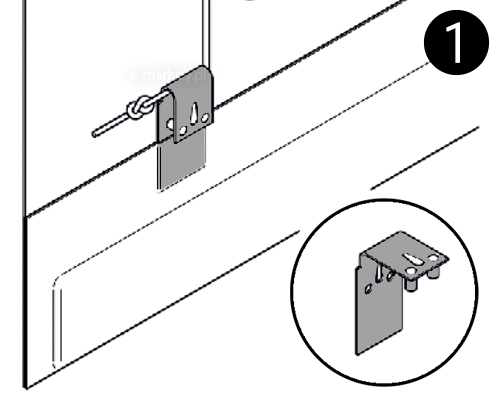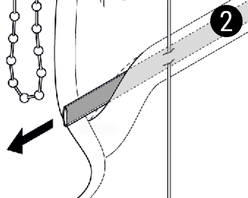 – Po praniu: ponownie przeciągnąć sznurki podciągania przez pasy do podciągania i zaczepić je na stałe w plastikowych zatrzaskach u dołu rolety.