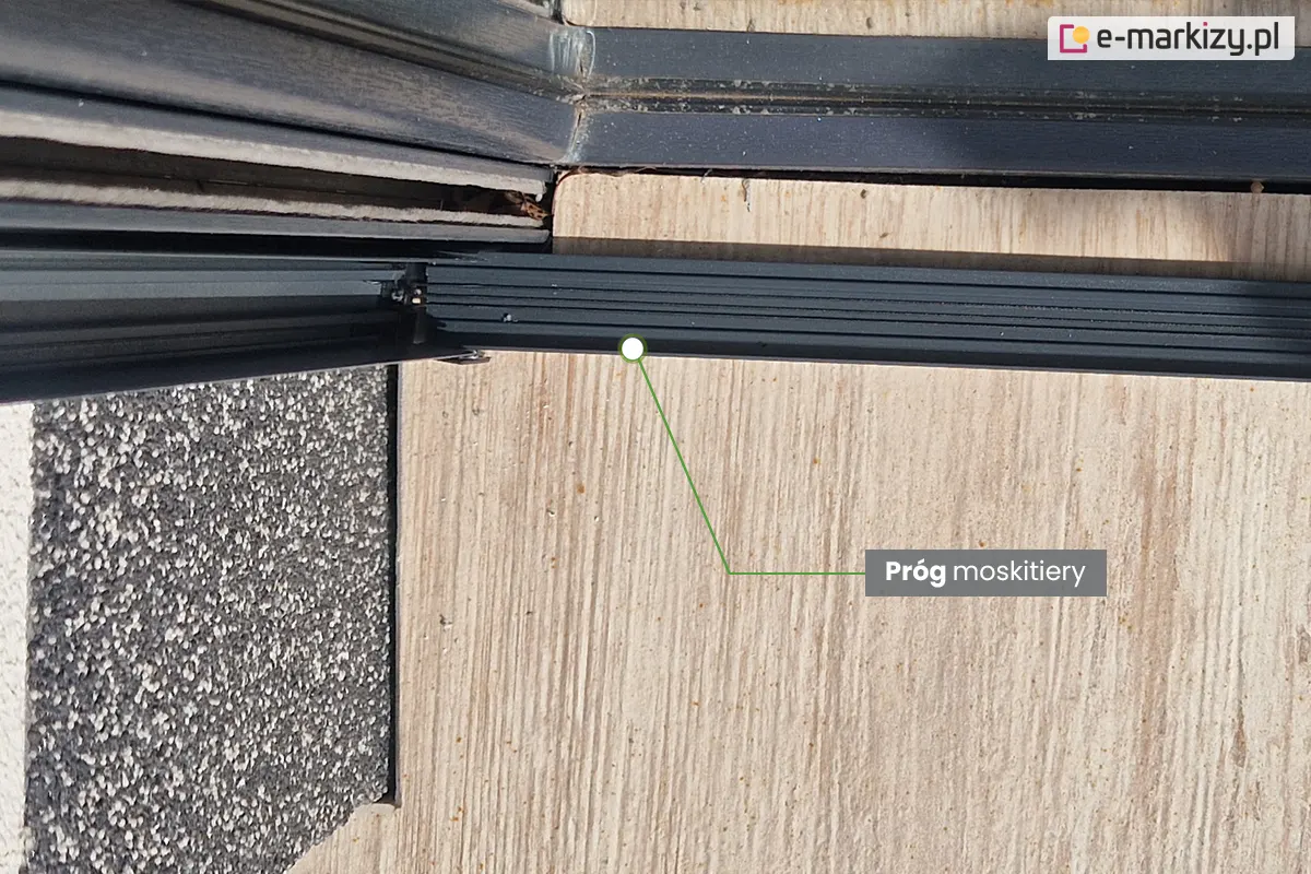 Standardowo możemy wybrać jeden z dostępnych kolorów konstrukcji moskitiery. Możliwe jest zamówienie osłony z okleiną w popularnym wzorze drewnopodobnym.