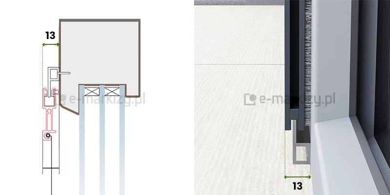 Profil z uszczelką ma szerokość zaledwie 13mm, dlatego można go zamontować pomiędzy ramą okna a pancerzem rolety zewnętrznej. W tym celu należy użyć górnej prowadnicy typu S.