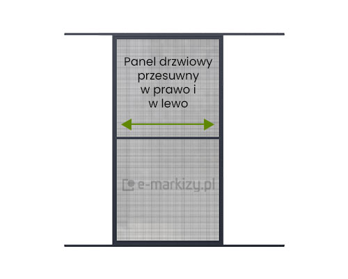 Panel moskitiery (drzwi), porusza się swobodnie po prowadnicach w prawo i w lewo. Możemy nim przysłonić otwór okienny o max szerokości do 130cm. Mając wnękę okienną np. 250cm, zamawiamy prowadnice o takiej szerokości, natomiast szerokość panelu, to szerokość otworu okiennego, który powstaje po otwarciu okna (max 130cm). Poprzeczka moskitiery, standardowo instalowana jest po środku ale możemy również zamocować ją na nietypowej wysokości.