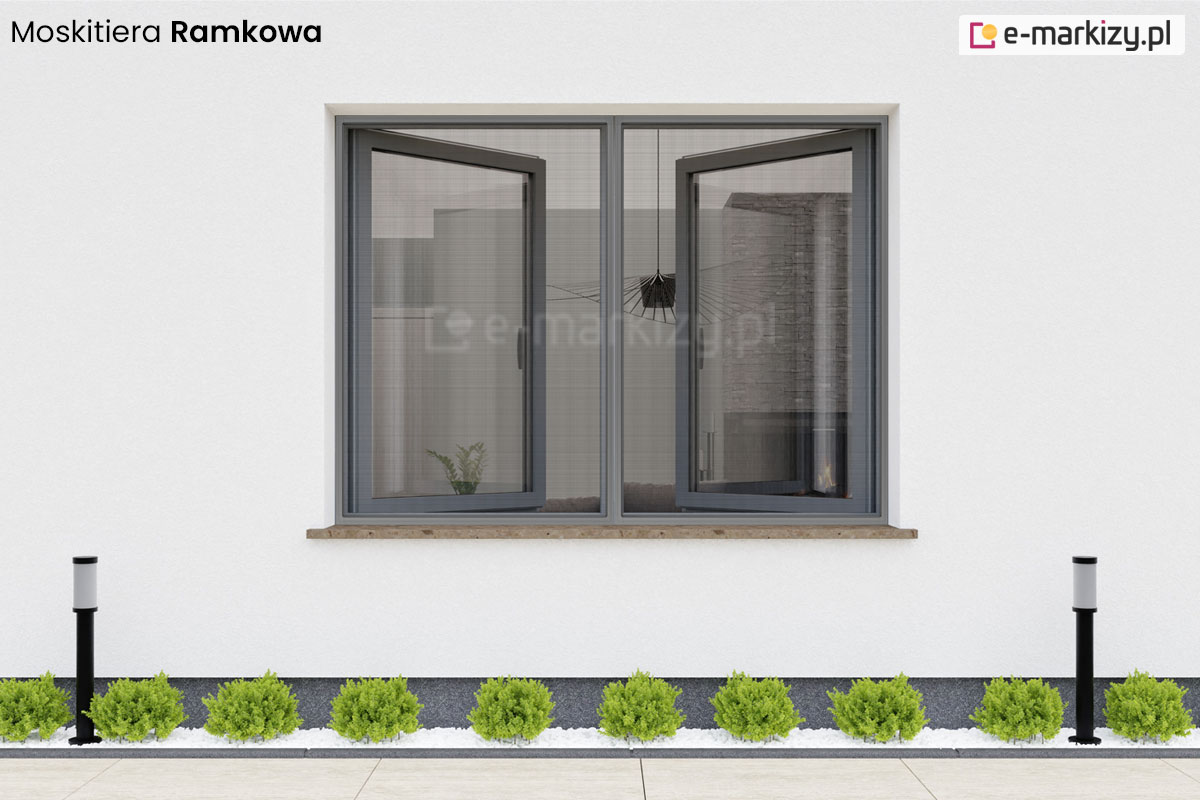Standardowo moskitiera wyposażona jest siatkę w kolorze szarym lub czarnym