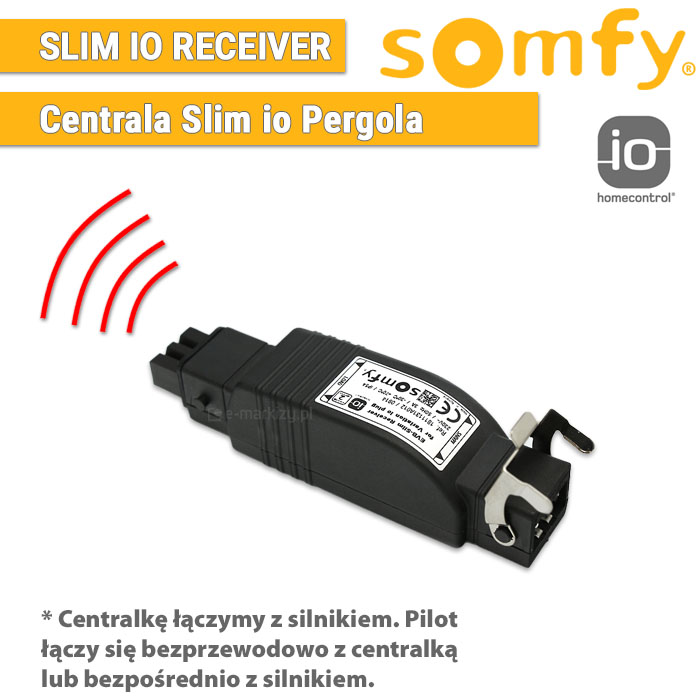 • sterowanie indywidualne – jeden odbiornik Slim io Receiver Pergola + Plug jest sterowany przez jeden nadajnik,