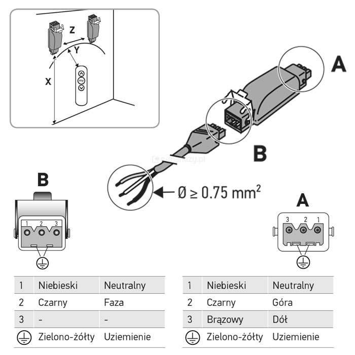 Aby zapewnić prawidłową transmisję sygnału fal radiowych, należy wysunąć przewód zasilający odbiornika Slim io Receiver Pergola + Plug z napędzanego produktu na co najmniej 30 cm