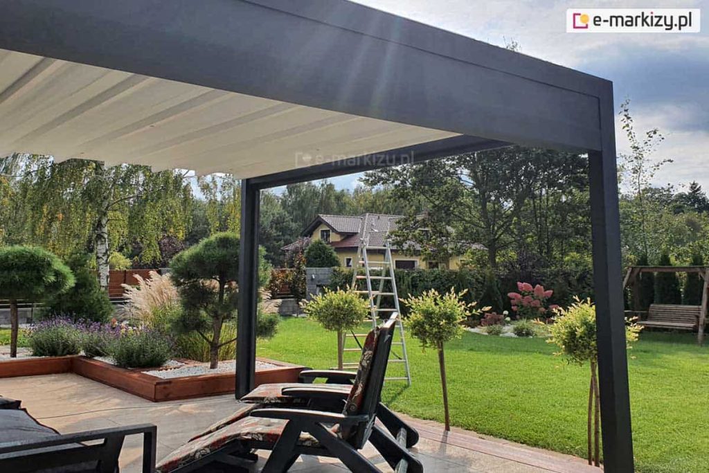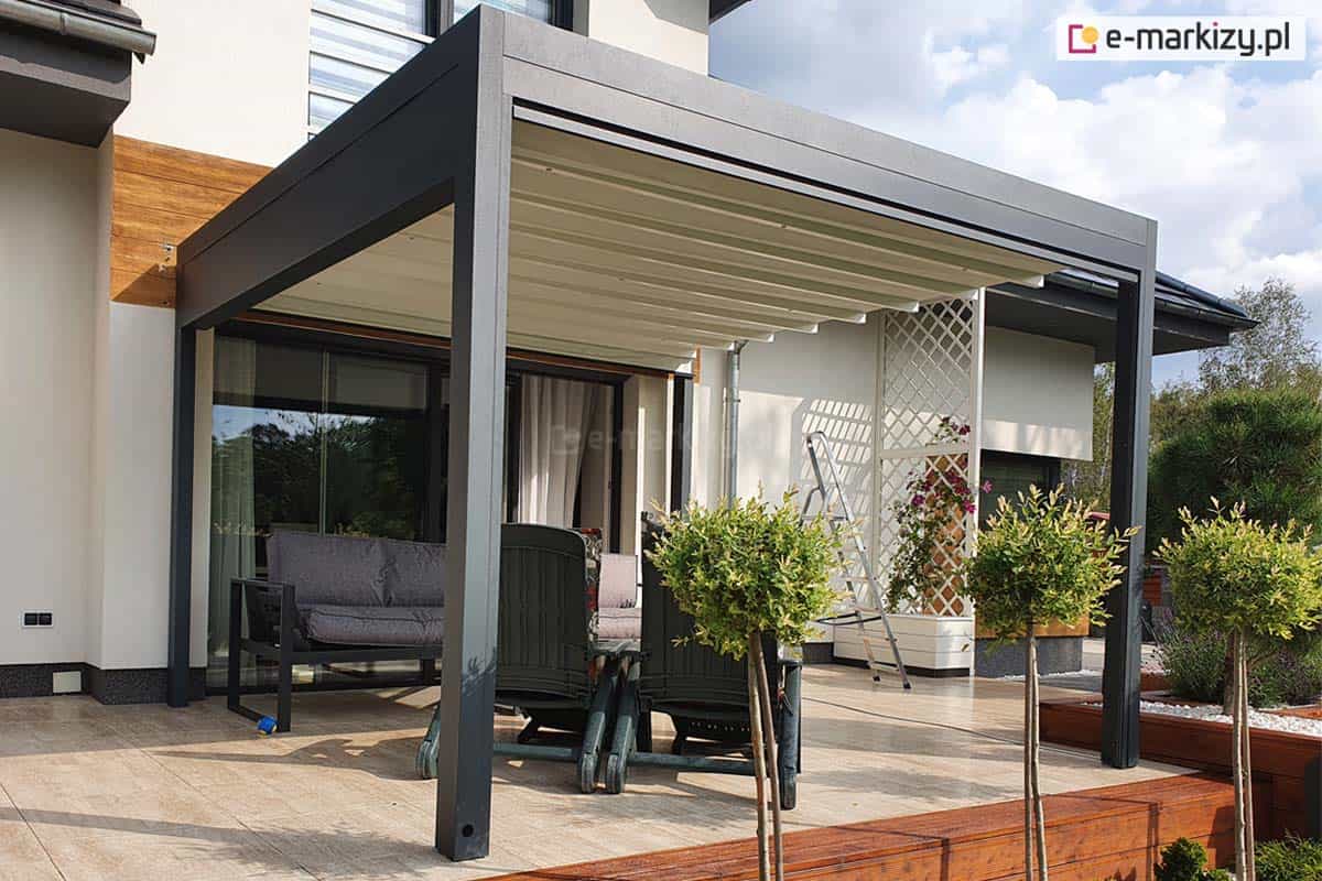 - Aluminiowa konstrukcja pergoli jest malowana proszkowo w kolorze antracytowym