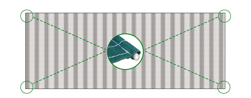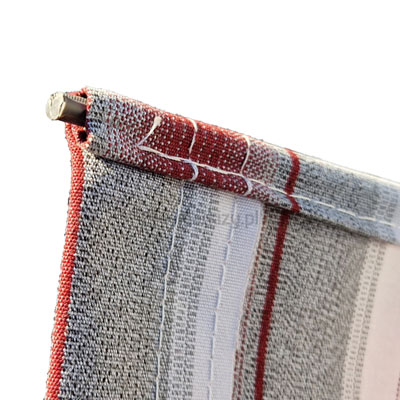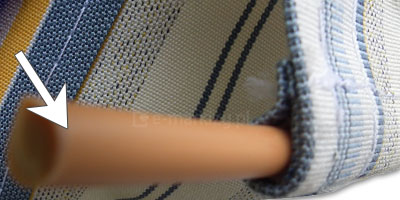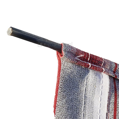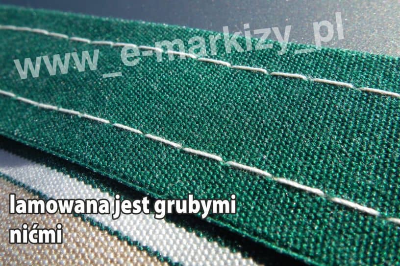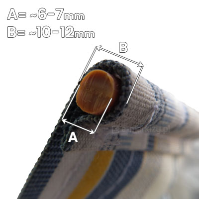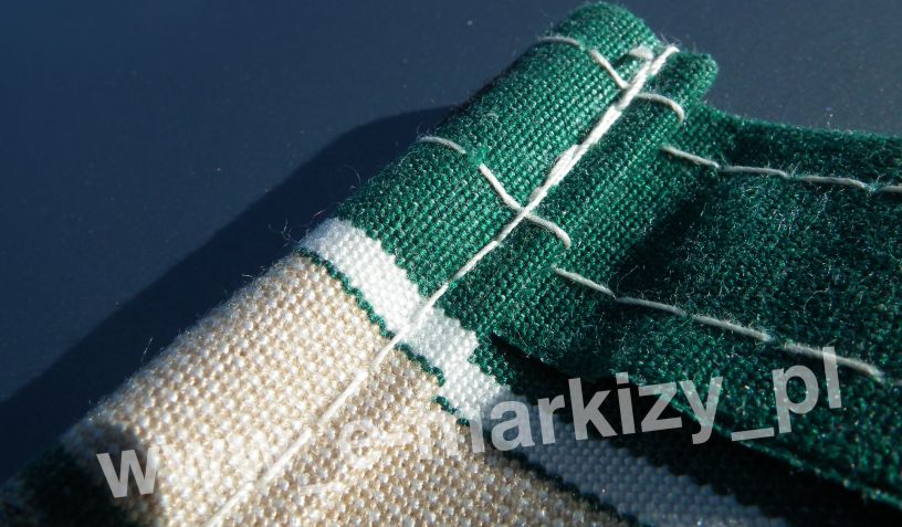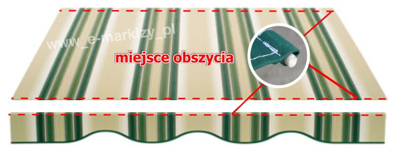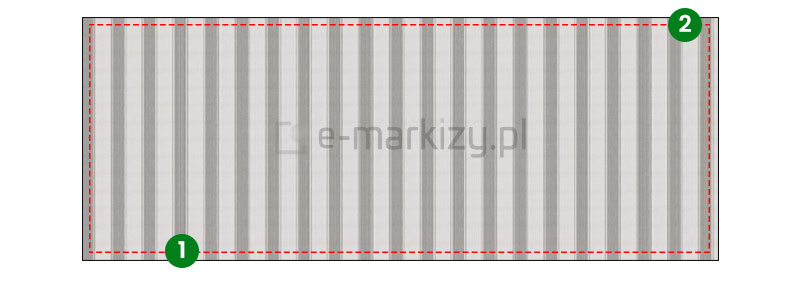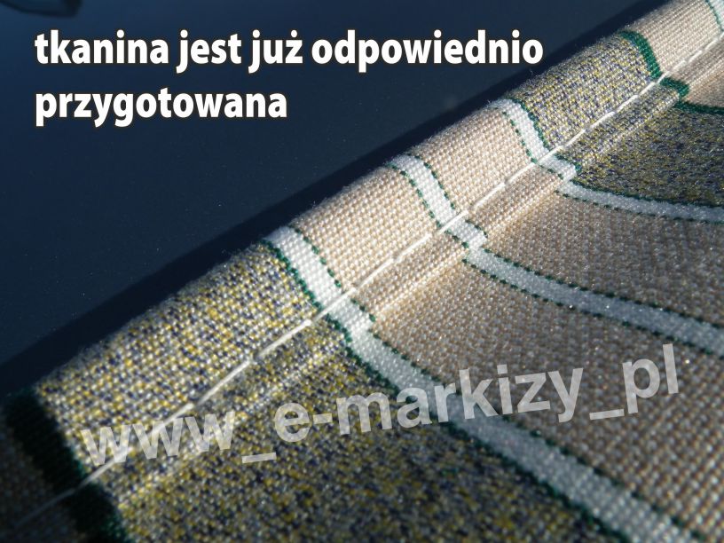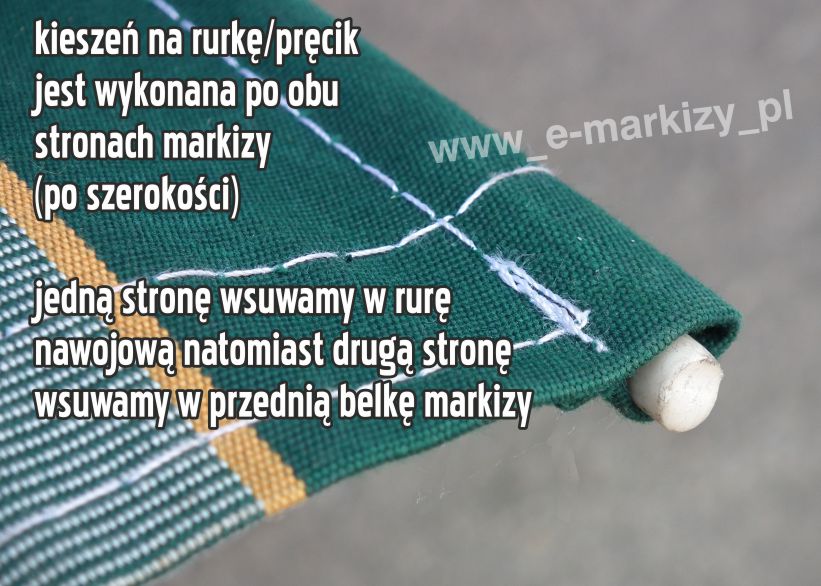 Tkanina w standardzie posiada kieszenie na pręcik elastyczny o średnicy ~7x11mm umiejscowione są po obu stronach tkaniny (wzdłuż szerokości). Pierwszy pręcik wsuwany jest w rurę nawojową markizy, a drugi w belkę przednią.
