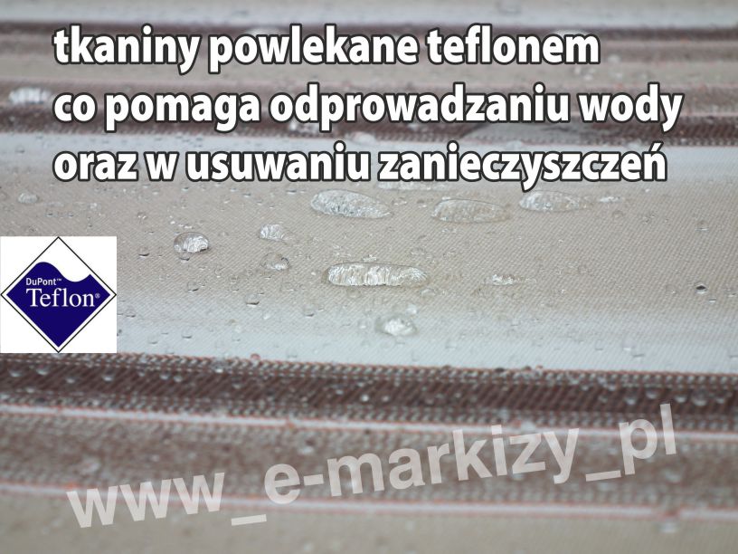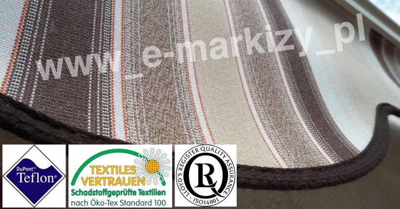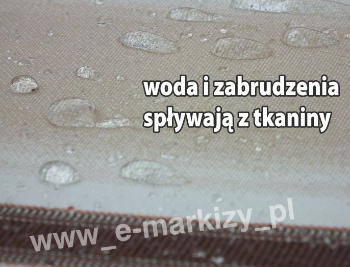 Wodoodporne tkaniny akrylowe „waterproof” do markiz odznaczają się zwiekszoną odpornością na przemakanie materiału, nawet do ~1000 mm wysokości słupa wody. Dzięki wykorzystaniu nowoczesnej technologii impregnacji oraz specjalnej struktury splotu, tkanina zapewnia wysoką przepuszczalność powietrza nawet w upalne dni. Certyfikat Oeko-Tex® zapewnia gwarancje, że tkaniny markizowe waterproof poddane specjalnemu impregnowaniu na wodoodporność nie są toksyczne. Zaletą tkanin akrylowych jest również wysoka odporność na rozciąganie i rozrywanie.