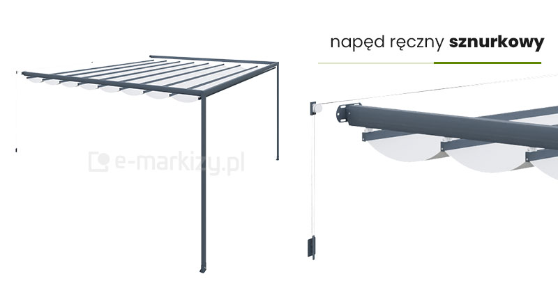 Pergola costa corner standardowo sterowana jest ręcznie za pomocą sznurków.