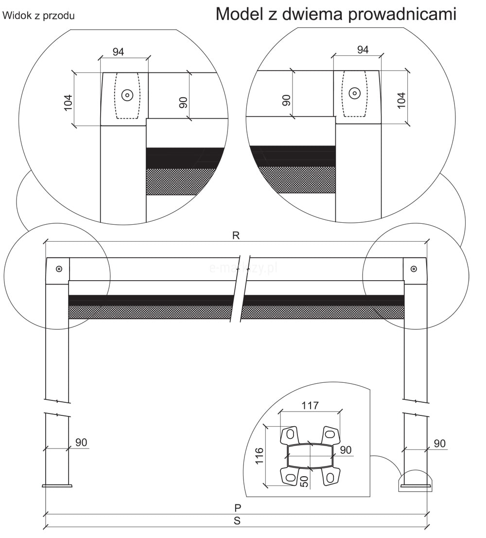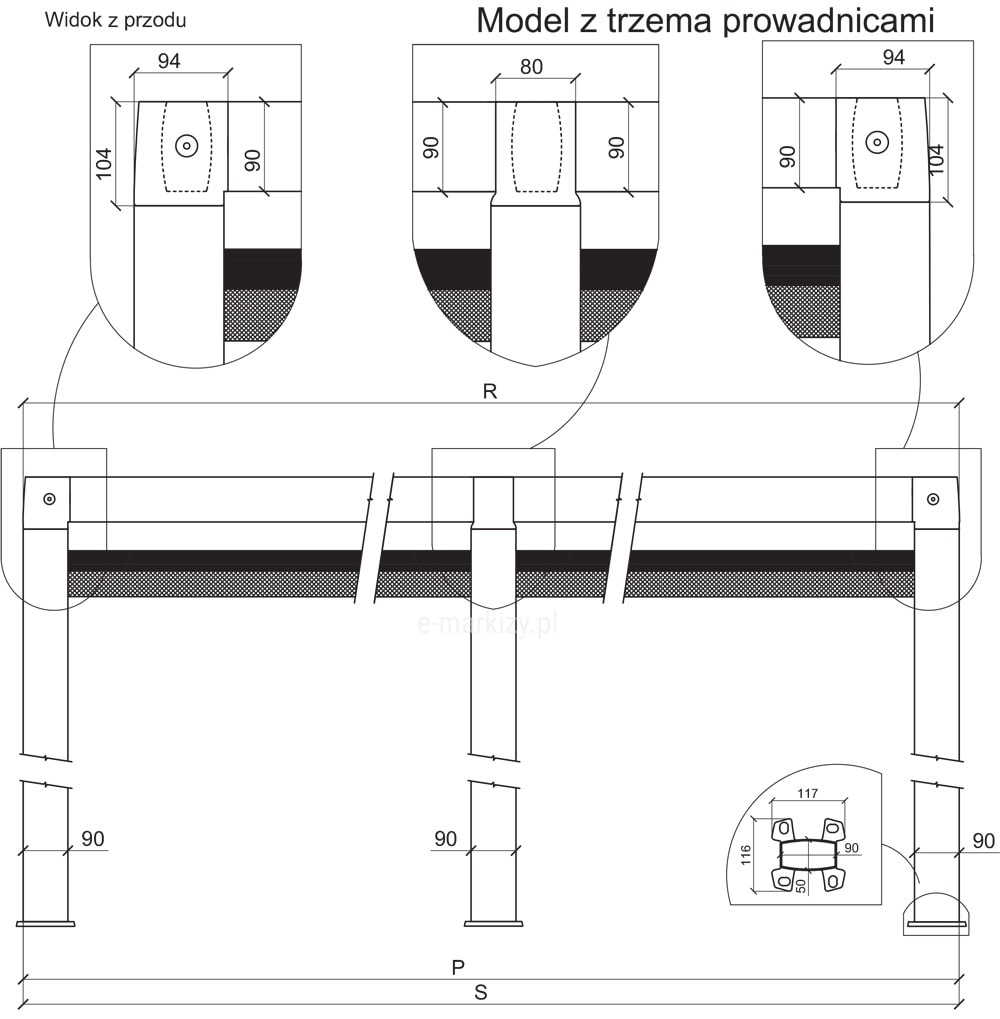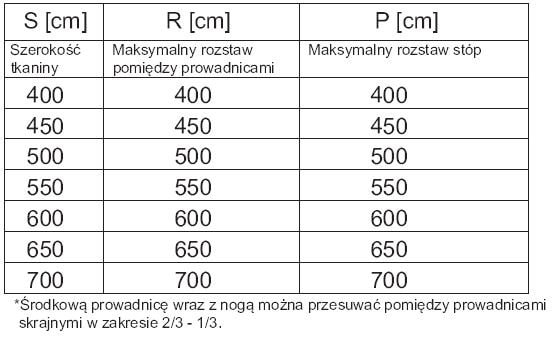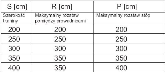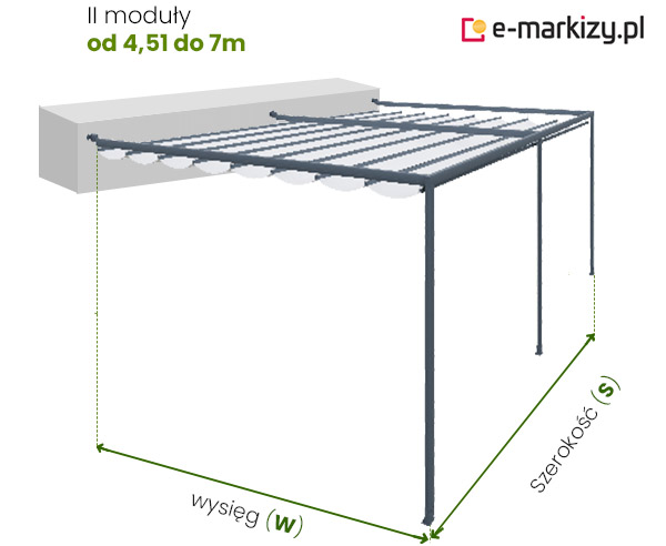 S – szerokość pergoli (od 200 do 700cm)