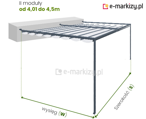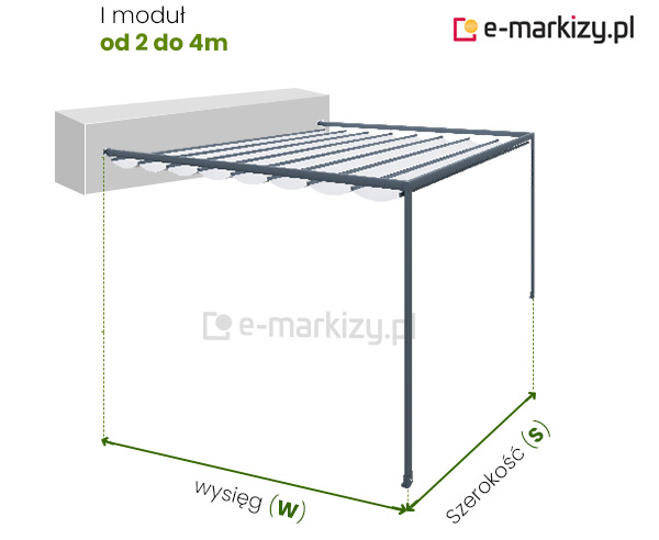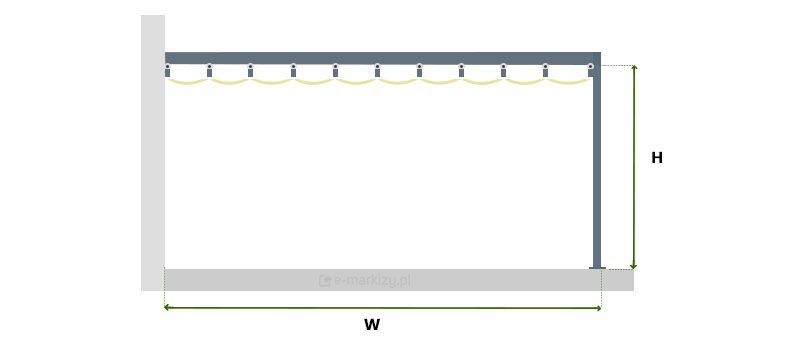 W – wysięg pergoli (od 200 do 600cm)