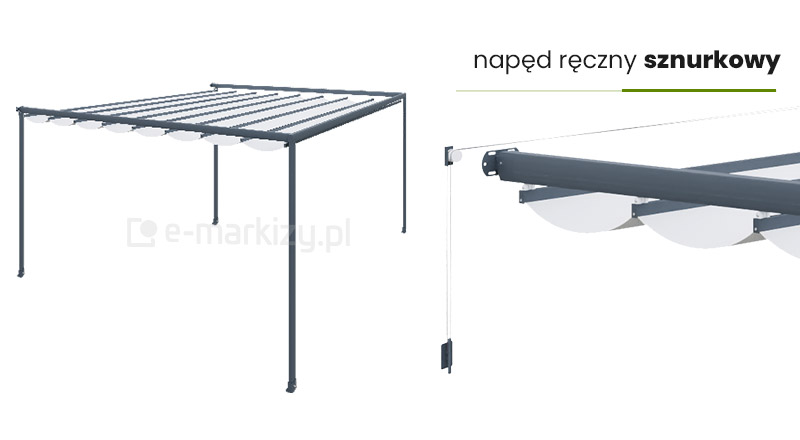 Pergola costa corner standardowo sterowana jest ręcznie za pomocą sznurków.