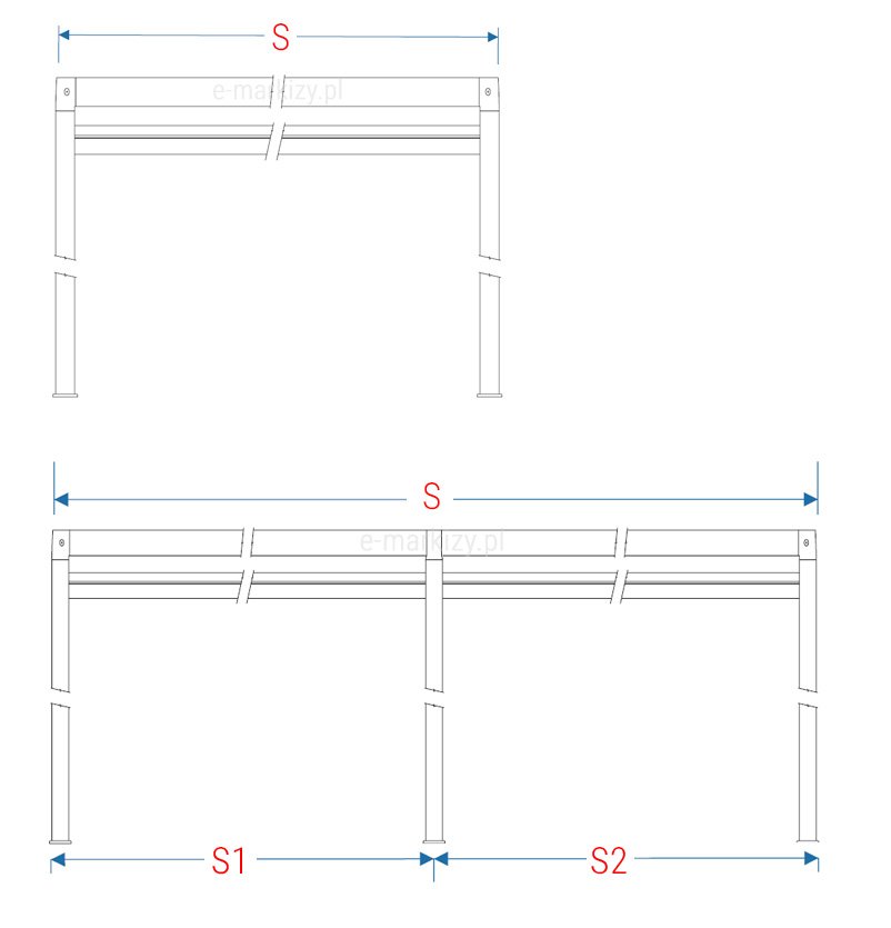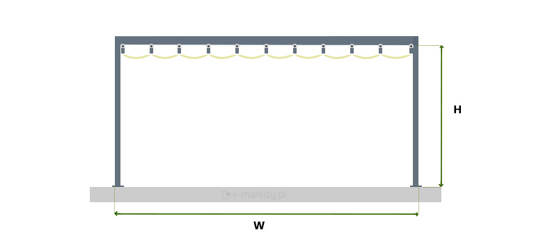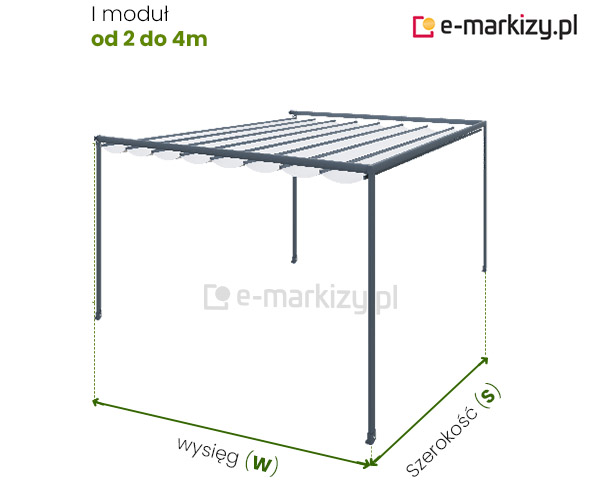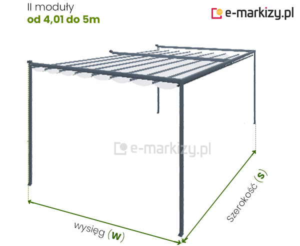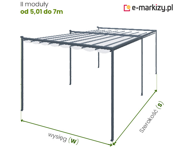 Zależnie od szerokości, pergola tarasowa wyposażona jest w inną ilość prowadnic i podpór
