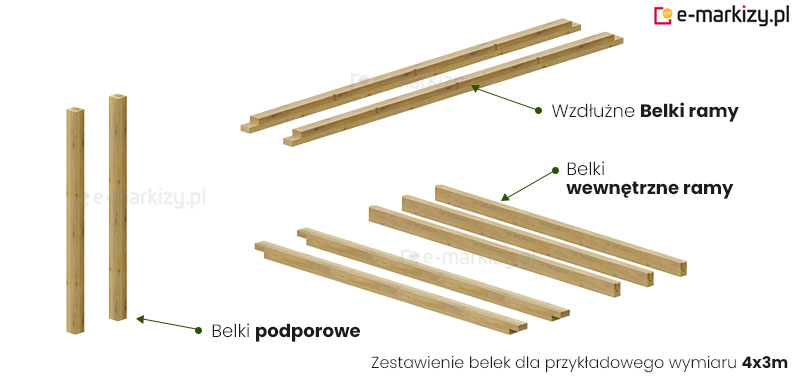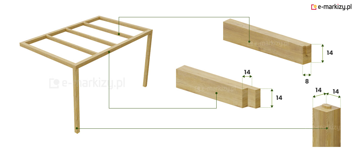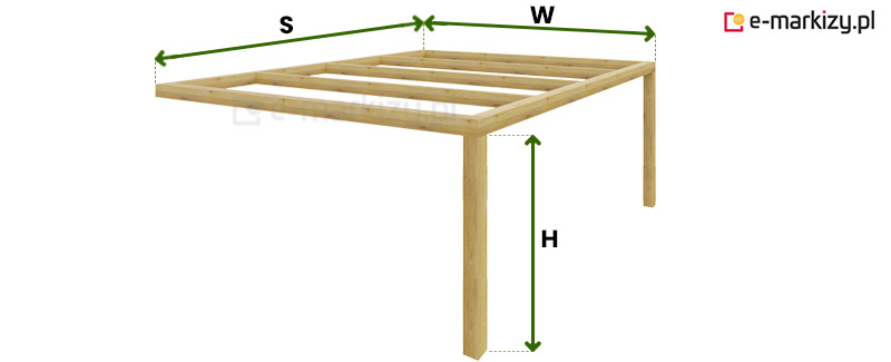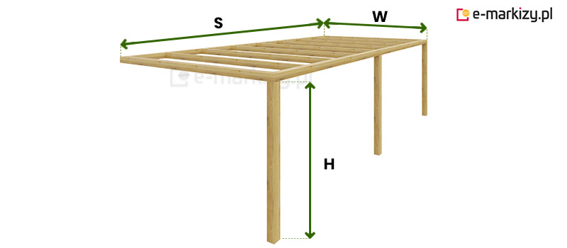 W=wysięg pergoli drewnianej (50-400cm)