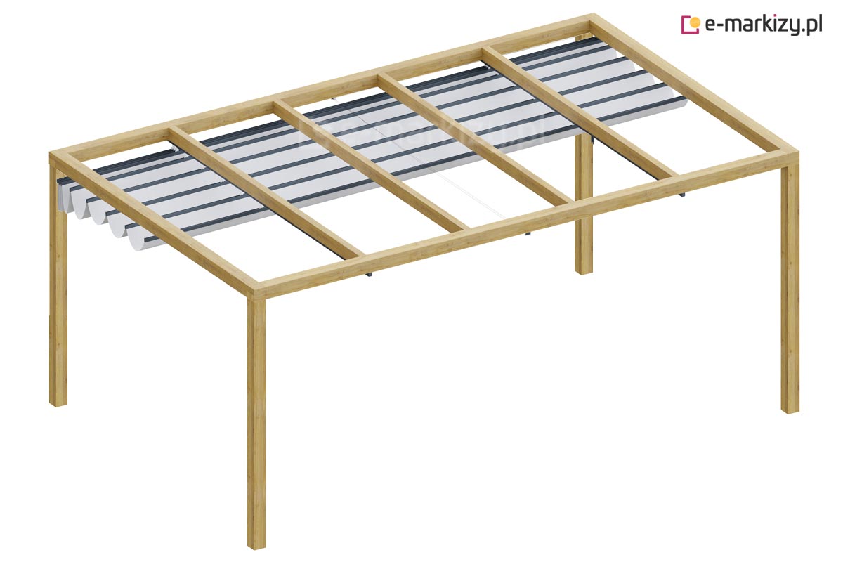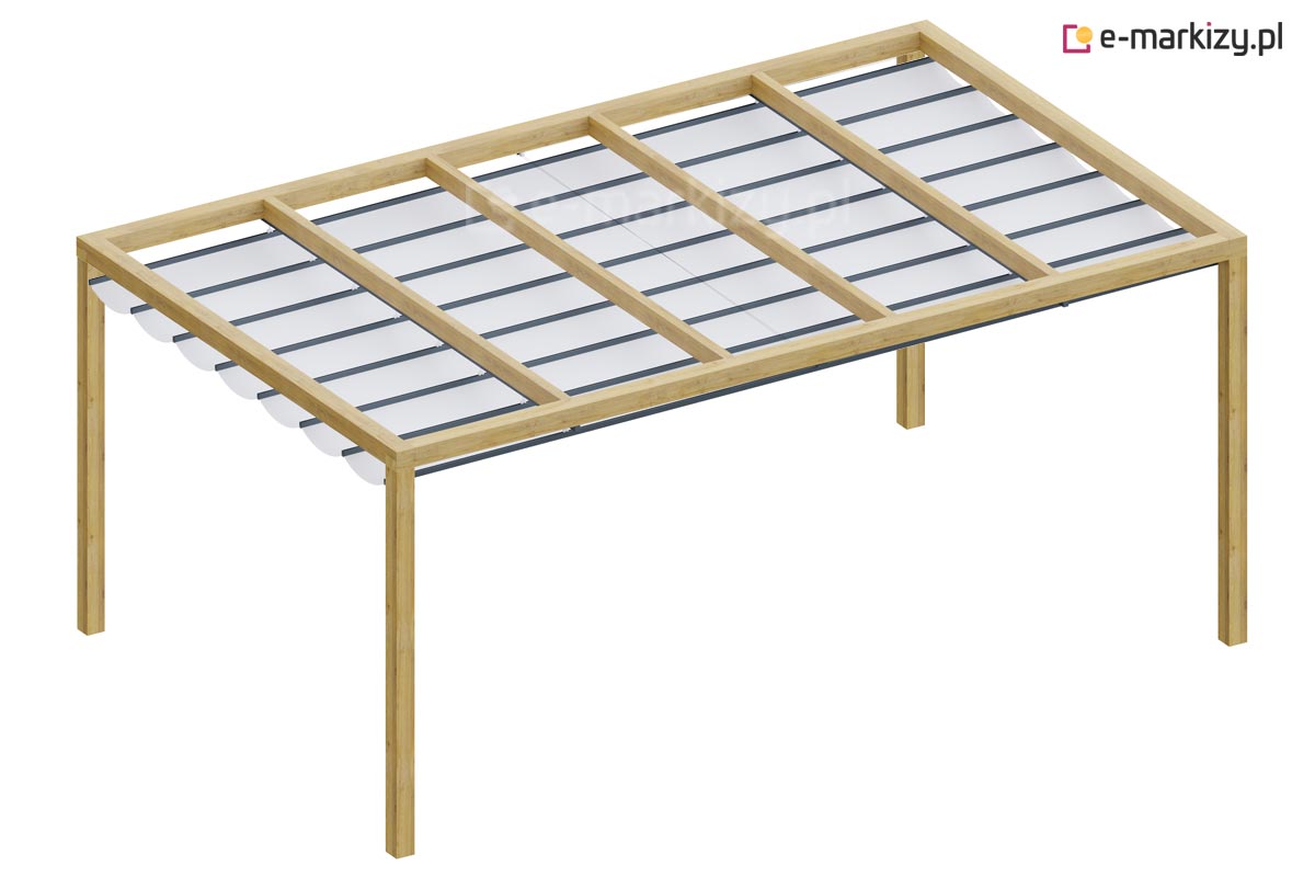 Zapraszamy do zapoznania się z galerią zdjęć i wizualizacji pergoli drewnianej Juko wolnostojącej oraz opcjonalnego dachu rzymskiego do pergoli. W zależności od szerokości pergoli, dach podwieszany jest na różnej liczbie prowadnic.