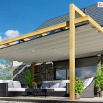 Pergola Drewniana Kolumnowa Moza – Wolnostojąca to uniwersalne zadaszenie tarasu wykonane z drewna. Drewniana konstrukcja stanowi podstawę do zabudowy dachem tkaninowym oraz roletami screen.