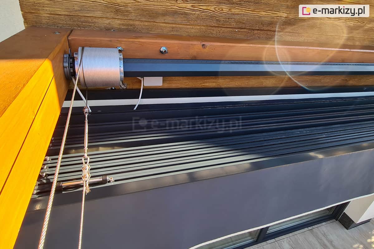 Dach poziomy rzymski Supro może być wykorzystany na gotowych konstrukcjach drewnianych poprzez podwieszenie na prowadnicach do boku lub dołu belki pergoli. Pergola dachowa jest sterowana manualnie lub automatycznie. Dach tkaninowy opiera się na systemie szyn dachowych (aluminiowych), w których poruszają się specjalne łożyskowane wózki tkaninowe. Tkanina zamocowana do belek przeciw-wietrznych, układa się w dekoracyjne fale.