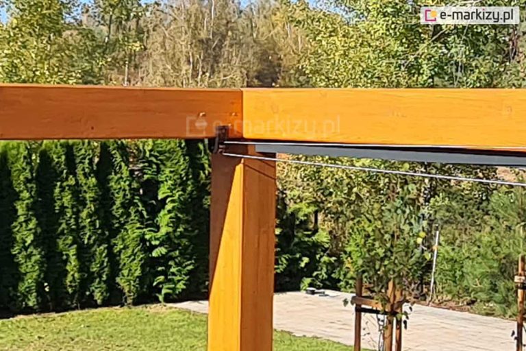 Wiata drewniana posiada konstrukcję wykonaną z masywnych i stabilnych belek o dużym przekroju – 14×14 cm. Przy szerokości większej niż 4 m – stosowana jest dodatkowa belka środkowa w górnej części pergoli. Jej wymiary to 14×8 cm. Tak zbudowana pergola ogrodowa zadaszenie pozwala na sprawne i funkcjonalne wyposażenie jej w opcjonalny dach rzymski.