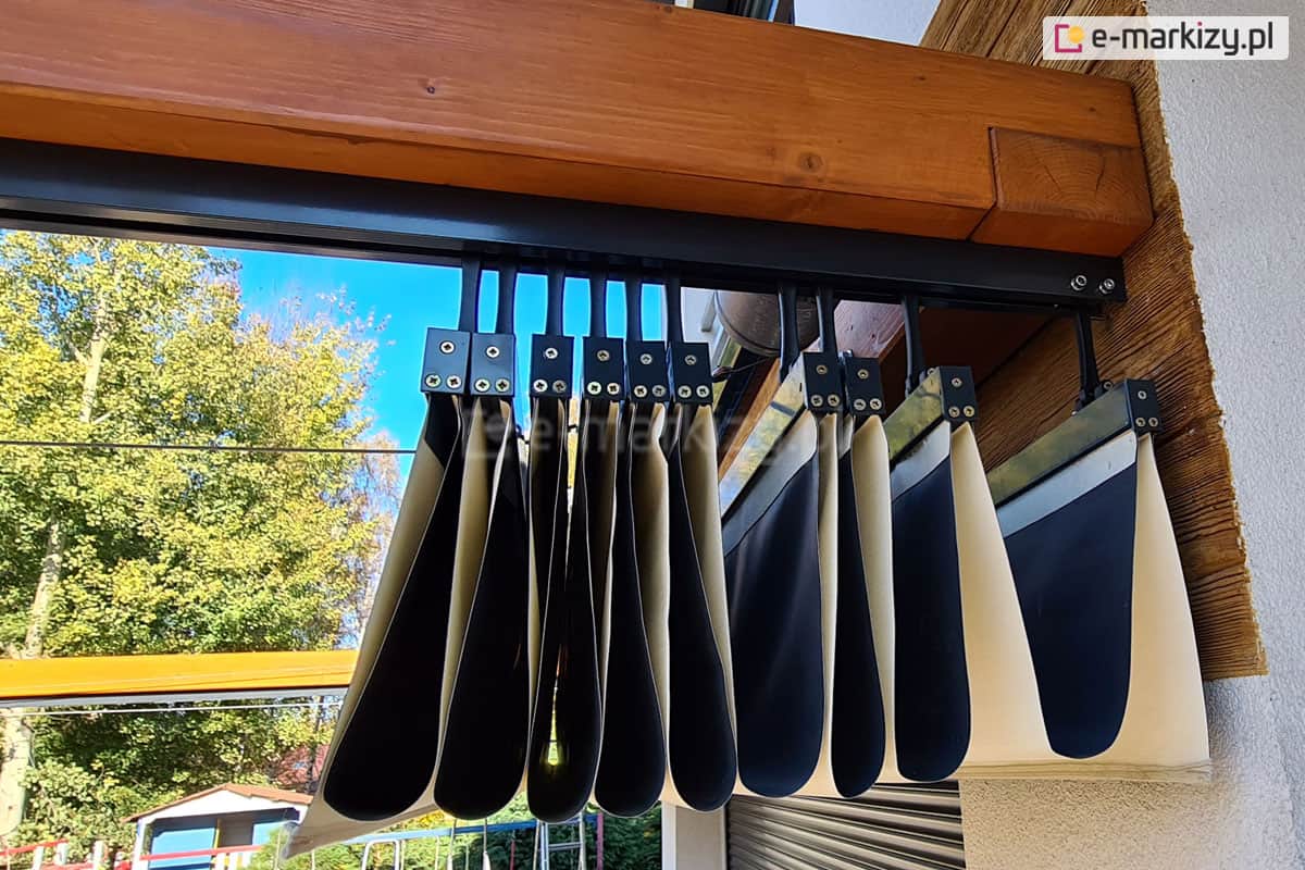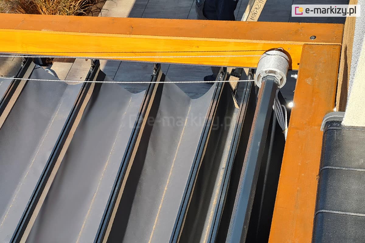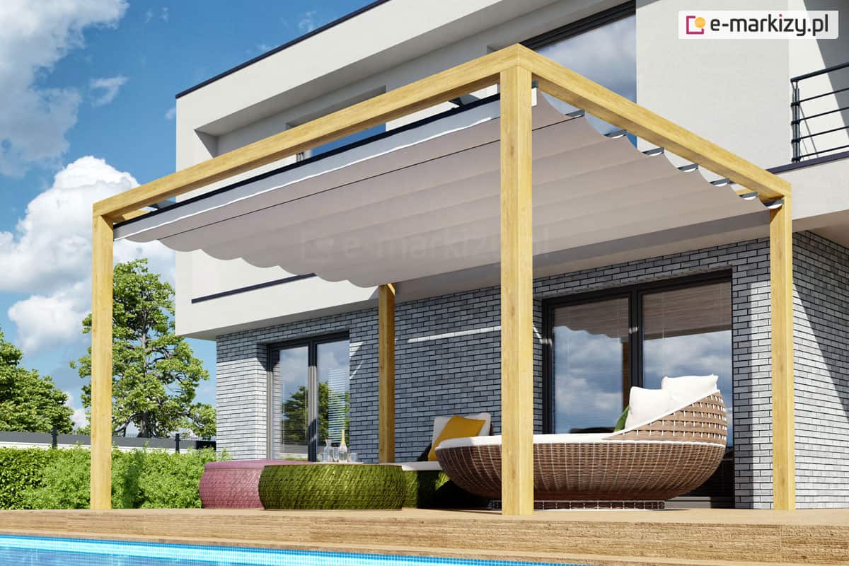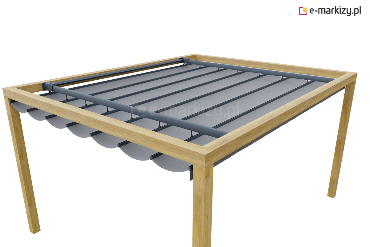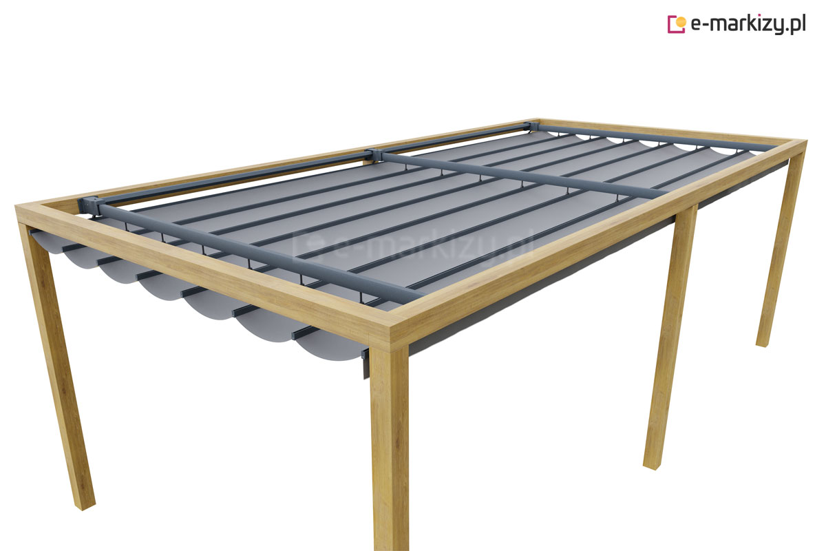 Dach poziomy rzymski Supro może być wykorzystany na gotowych konstrukcjach drewnianych poprzez podwieszenie na prowadnicach do boku lub dołu belki pergoli. Pergola dachowa jest sterowana manualnie lub automatycznie. Dach tkaninowy opiera się na systemie szyn dachowych (aluminiowych), w których poruszają się specjalne łożyskowane wózki tkaninowe. Tkanina zamocowana do belek przeciw-wietrznych, układa się w dekoracyjne fale.