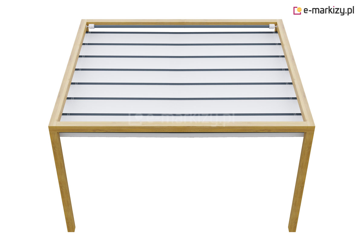 Pergola Drewniana Tarasowa na taras Koro – Wolnostojąca to uniwersalne zadaszenie tarasu wykonane z drewna. Wytrzymała konstrukcja wykonana jest z drewna i stanowi podstawę do zabudowy dachem rzymskim oraz refleksolami. Do szerokości 4m, pergola posiada 2 podpory, konstrukcja powyżej 4m wsparta jest na 3 podporach i wzmocniona jest wewnętrzną belką.