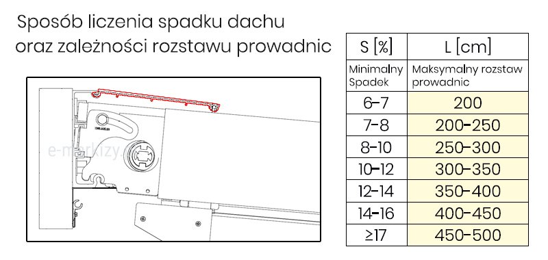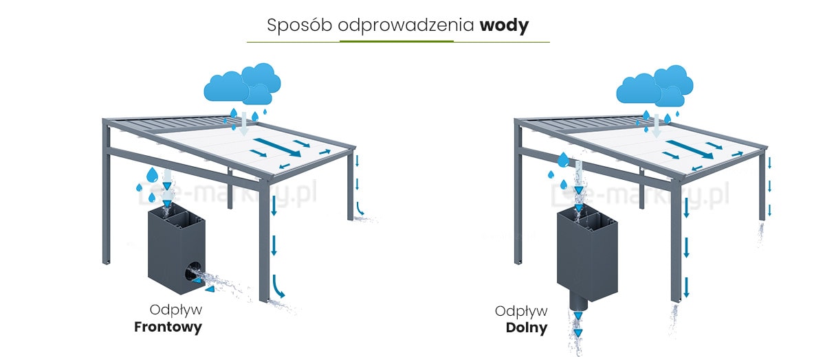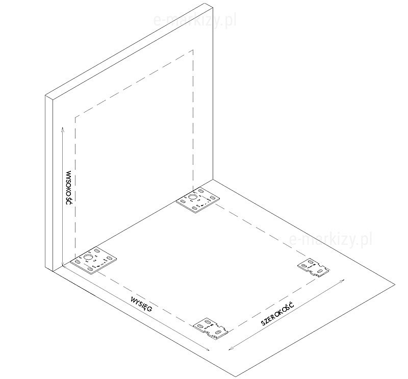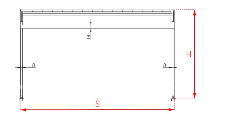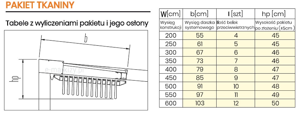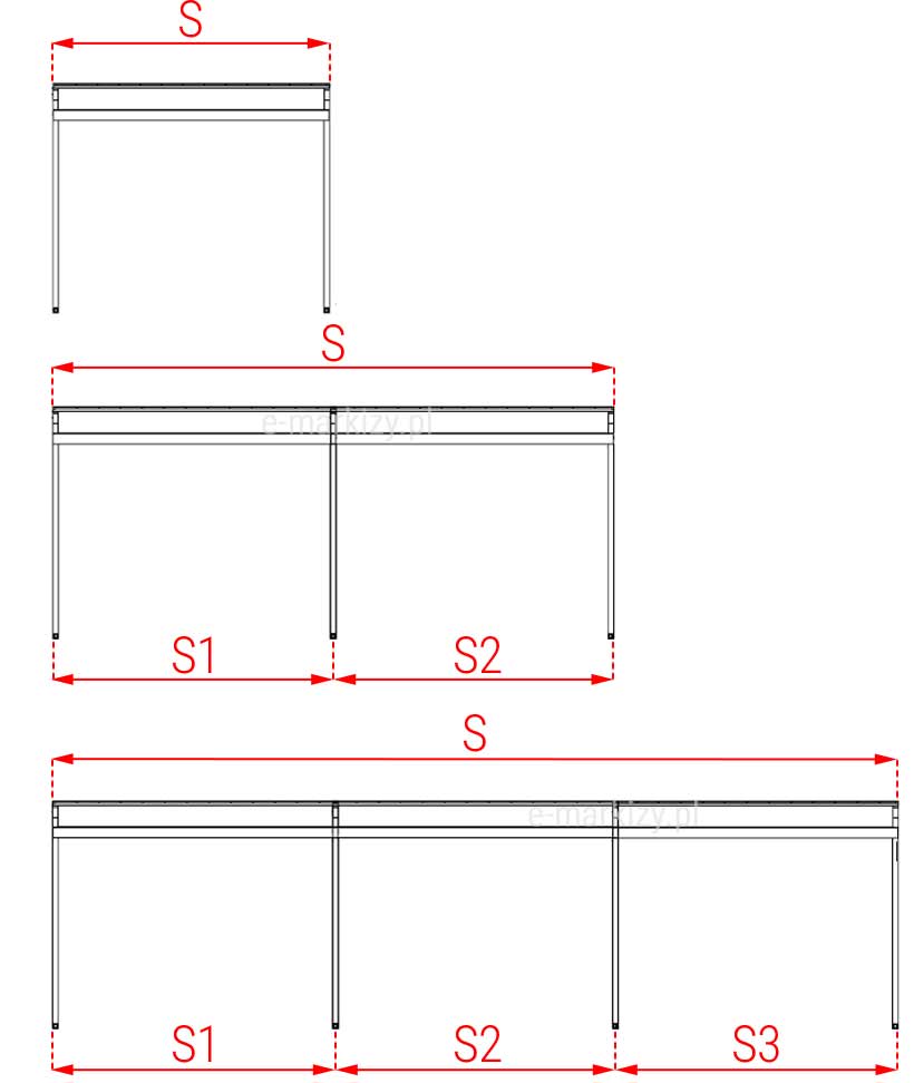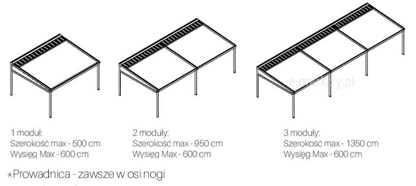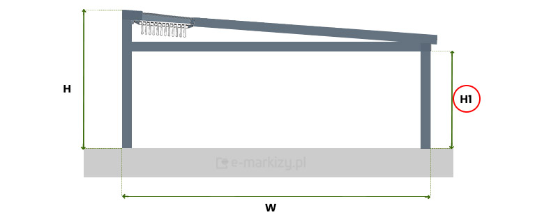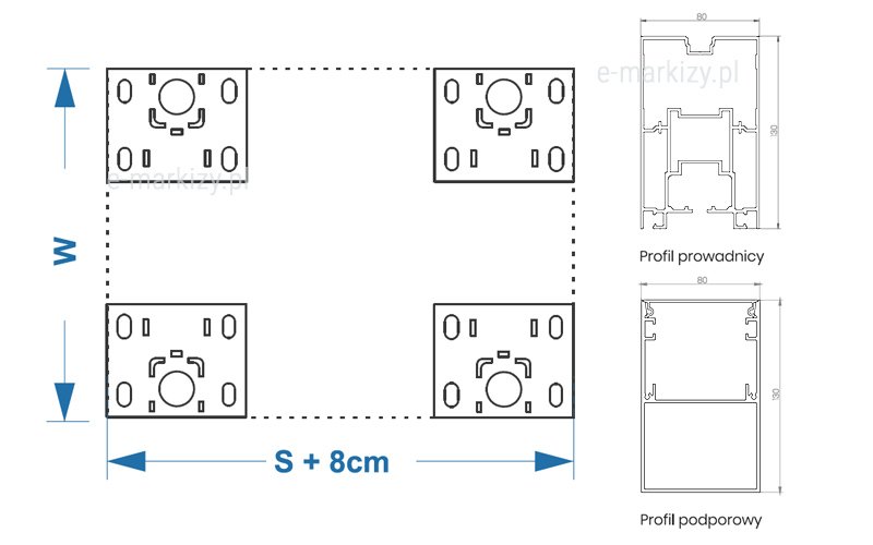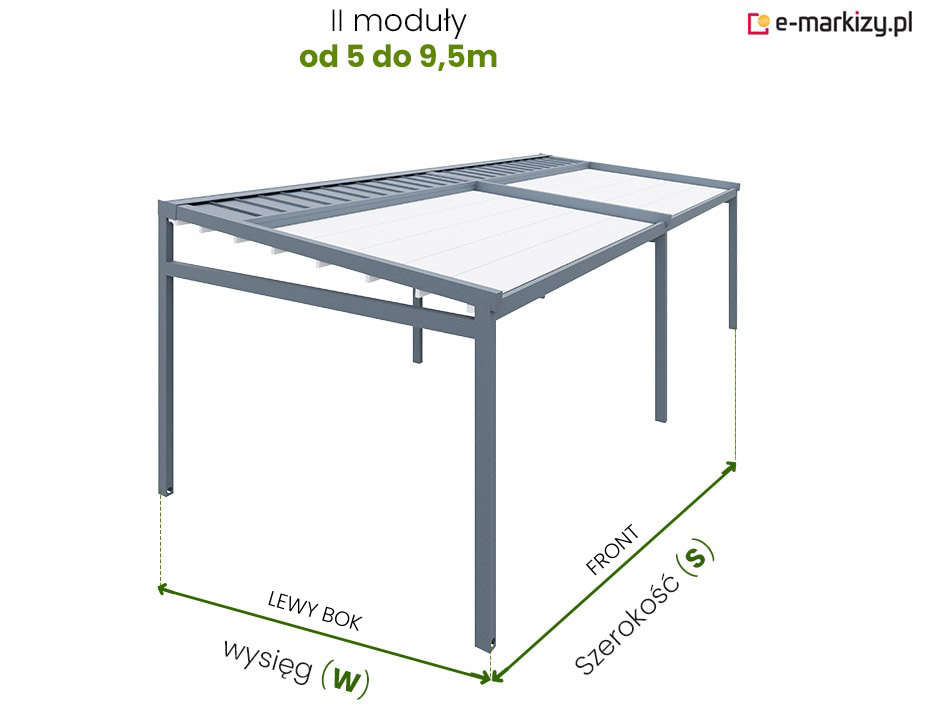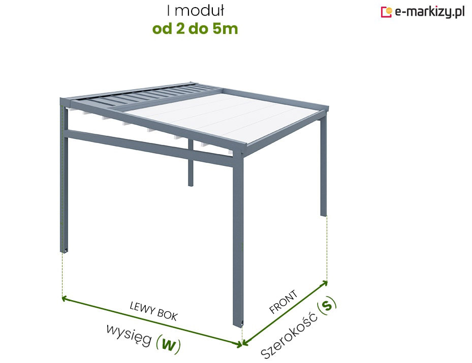 S=Szerokość pergoli, W=Wysięg pergoli