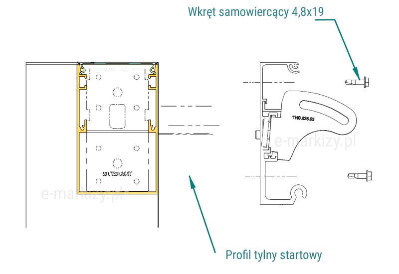 Profil tylny startowy należy przymocować do belki tylnej za pomocą wkrętów 4,8×19