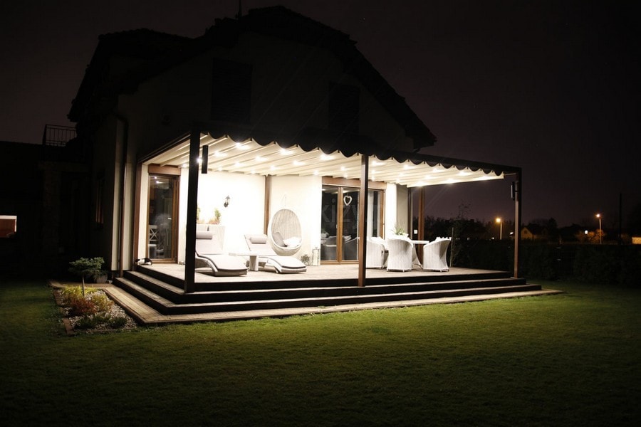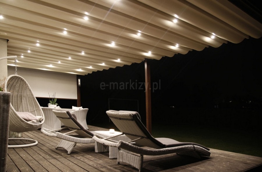 Pergola Flat powstała z myślą o współczesnej architekturze. Konstrukcja wyróżnia się lekkością i minimalizmem. Zachowanie kątów prostych sprawia, że konstrukcja tarasowa doskonale wpisuje się w nowoczesne bryły budynków. Poziomy dach osadzony na stelażu z aluminium można składać lub rozkładać w zależności od potrzeby. Rozłożony chroni przed deszczem, blokuje nadmiar ciepła oraz zacienia, złożony – pozwala cieszyć się pogodą. Zastosowana w zadaszeniu tkanina posiada unikalne właściwości, jest w pełni wodoszczelna, odporna na zabrudzenia i wahania temperatury -30°C/+70°C.