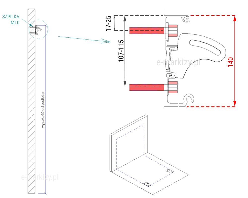 Należy pamiętać, że minimalna odległość kotwiczenia profila po obu stronach to około 250mm.