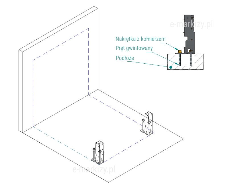 oraz zabezpieczających ich nakrętek. Należy użyć do tego kotwy chemicznej.