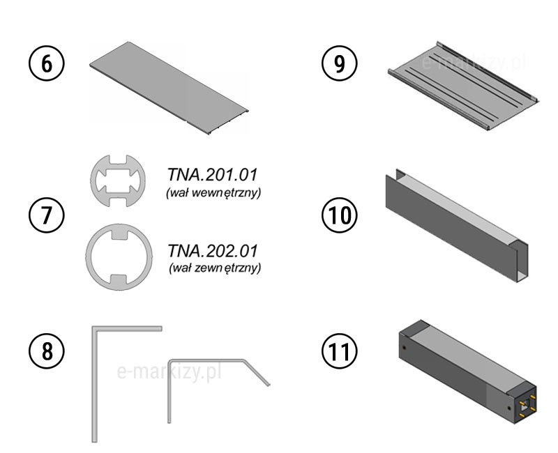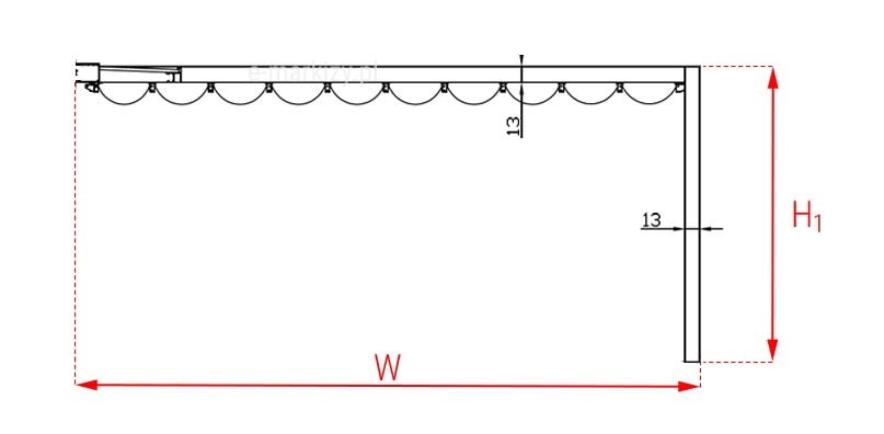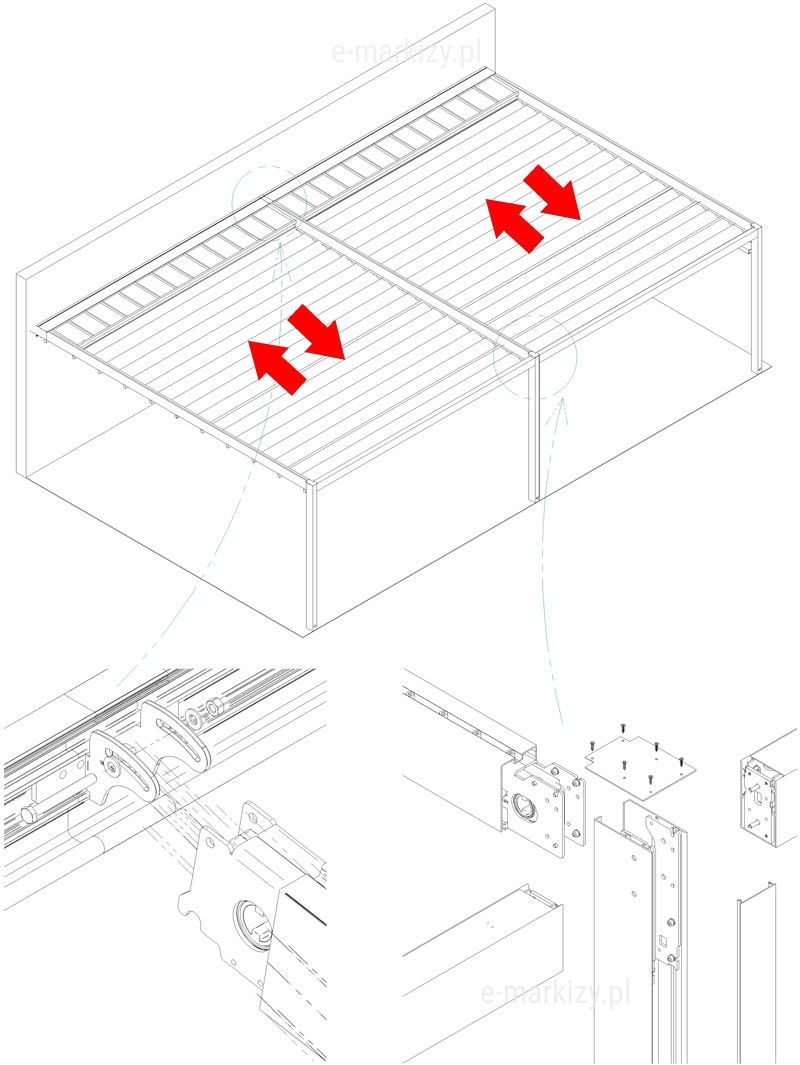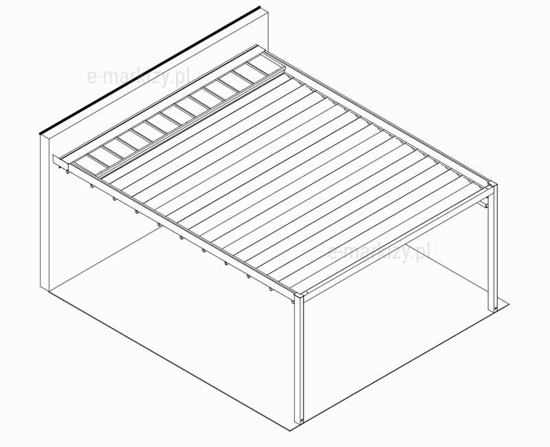 Opcjonalnie, pergolę możemy doposażyć w daszek ochronny. Chroni on tkaninę przed zabrudzeniami podczas jej całkowitego zwinięcia. Daszek składa się z pojedynczych paneli, które kolejno do siebie dokładamy.