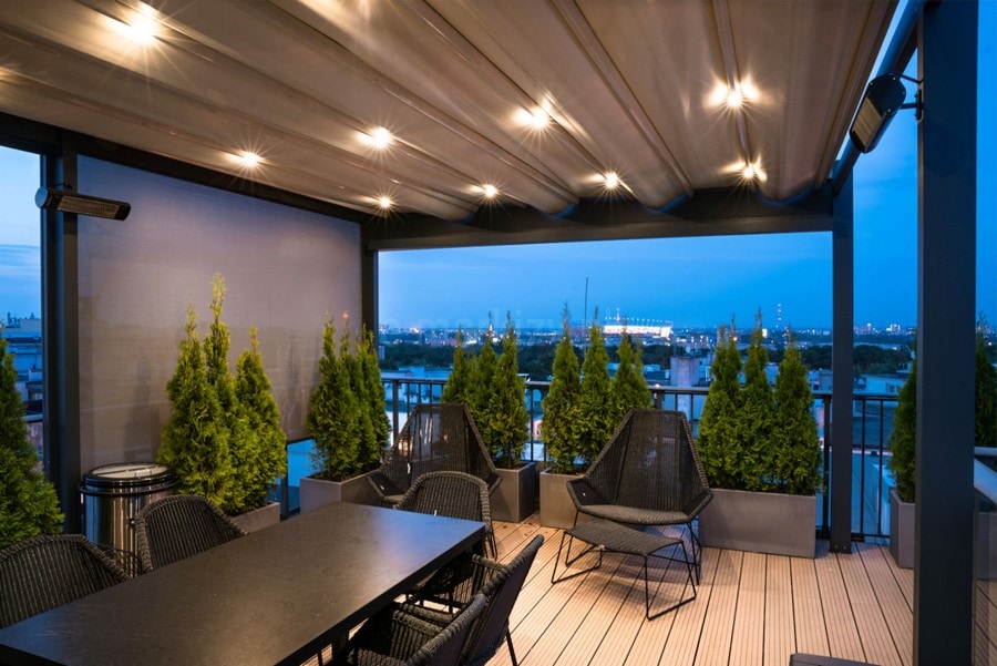 Konstrukcja pergoli Tarsaola Flat wyróżnia się lekkością i minimalizmem. Zachowanie kątów prostych sprawia, że zadaszenie Flat doskonale wpisuje się w nowoczesne bryły budynków. Poziomy dach osadzony na stelażu z aluminium można składać lub rozkładać w zależności od potrzeby. Rozłożony chroni przed deszczem, blokuje nadmiar ciepła oraz zacienia, złożony – pozwala cieszyć się pogodą. Możliwość zamontowana bocznej rynny powoduje płynne odprowadzanie wody deszczowej do ukrytego systemu orynnowania. Szeroka gama dodatkowego wyposażenia pozwala uzyskać optymalne warunki do wypoczynku niemal o każdej porze dnia i roku.