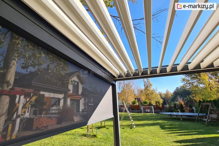 Najpopularniejszą formą zasłaniania ścian w pergolach są refleksole. To nic innego jak zewnętrzna osłona przeciwsłoneczna.