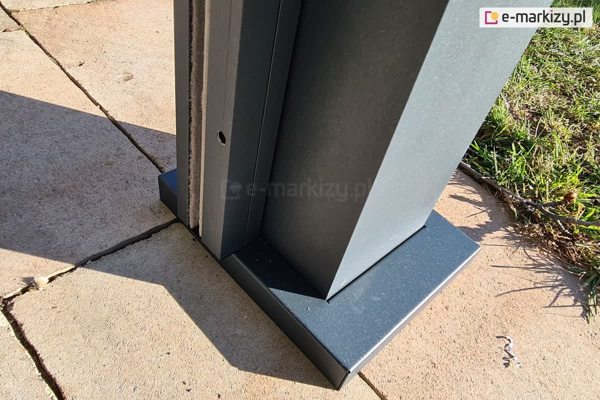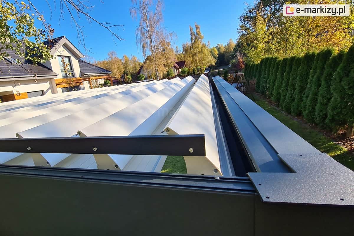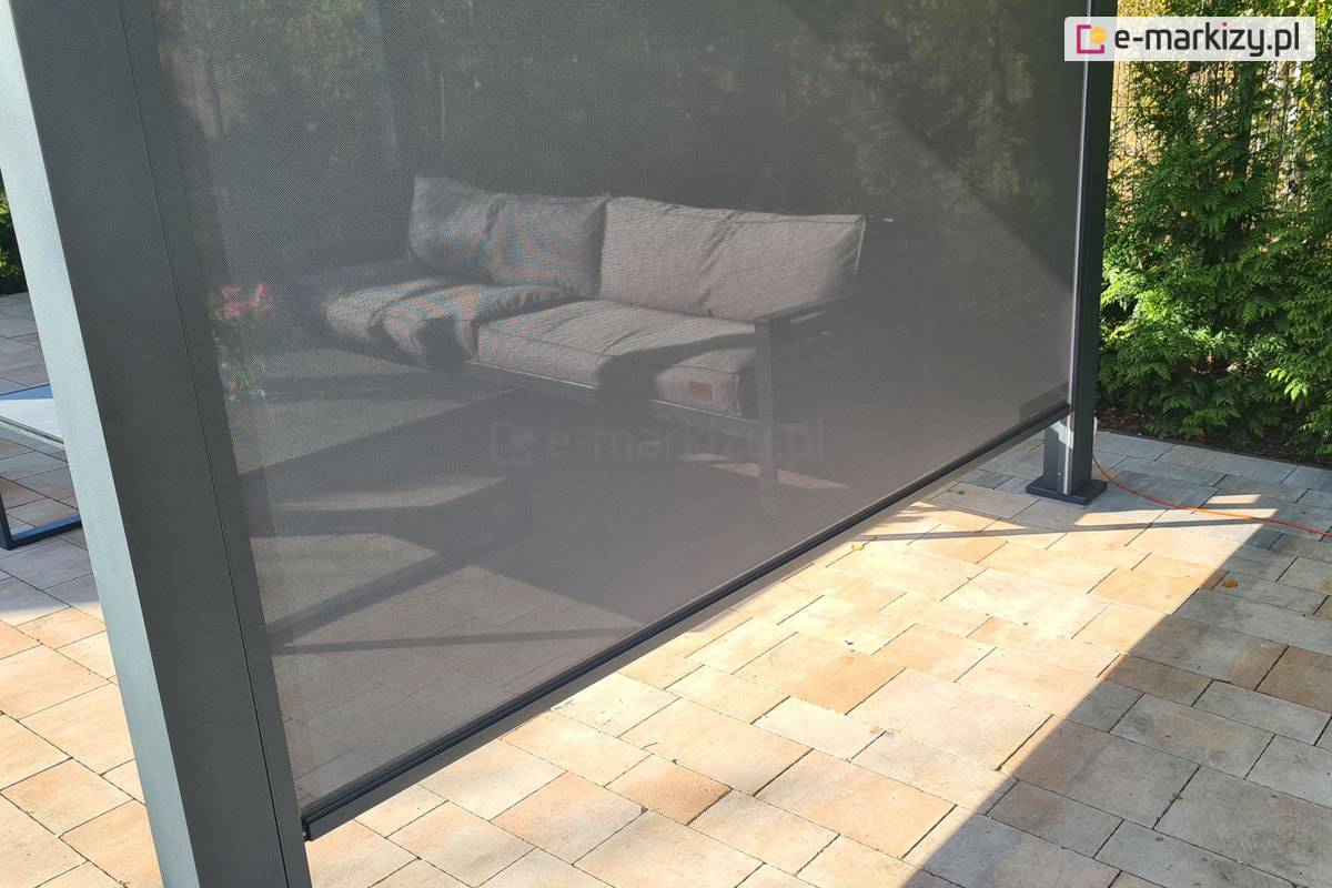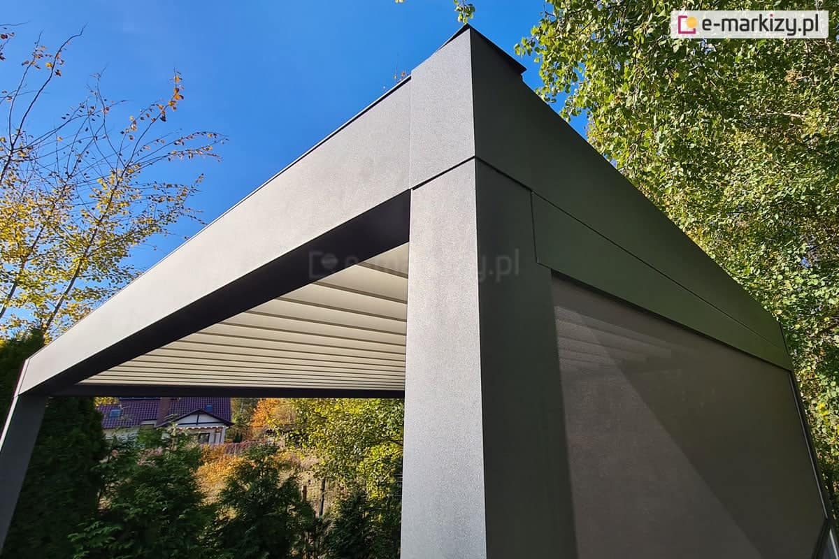 Silnik elektryczny ukryty jest w konstrukcji pergoli z lewej lub prawej strony.