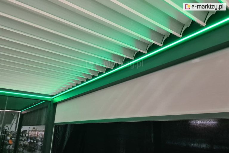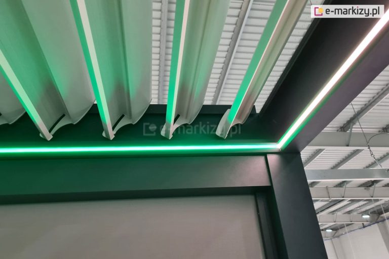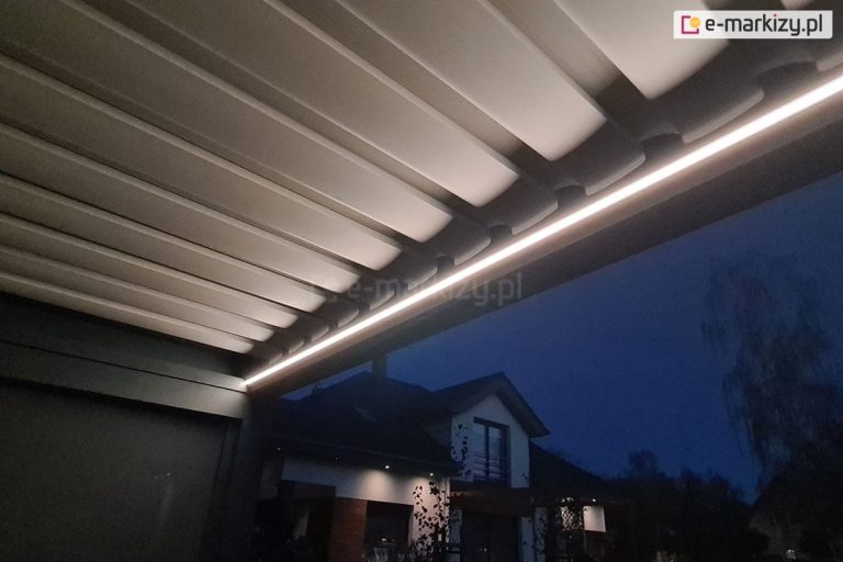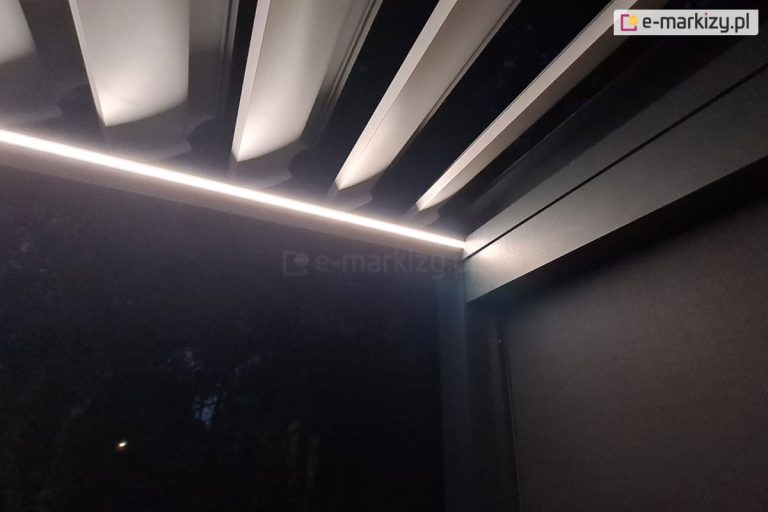 Dla każdej pergoli tarasowej możemy dedykować oświetlenie ledowe. Mogą to być rozwiązania systemowe lub dodatkowe elementy niesystemowe np. w postaci listew lub punktów świetlnych.