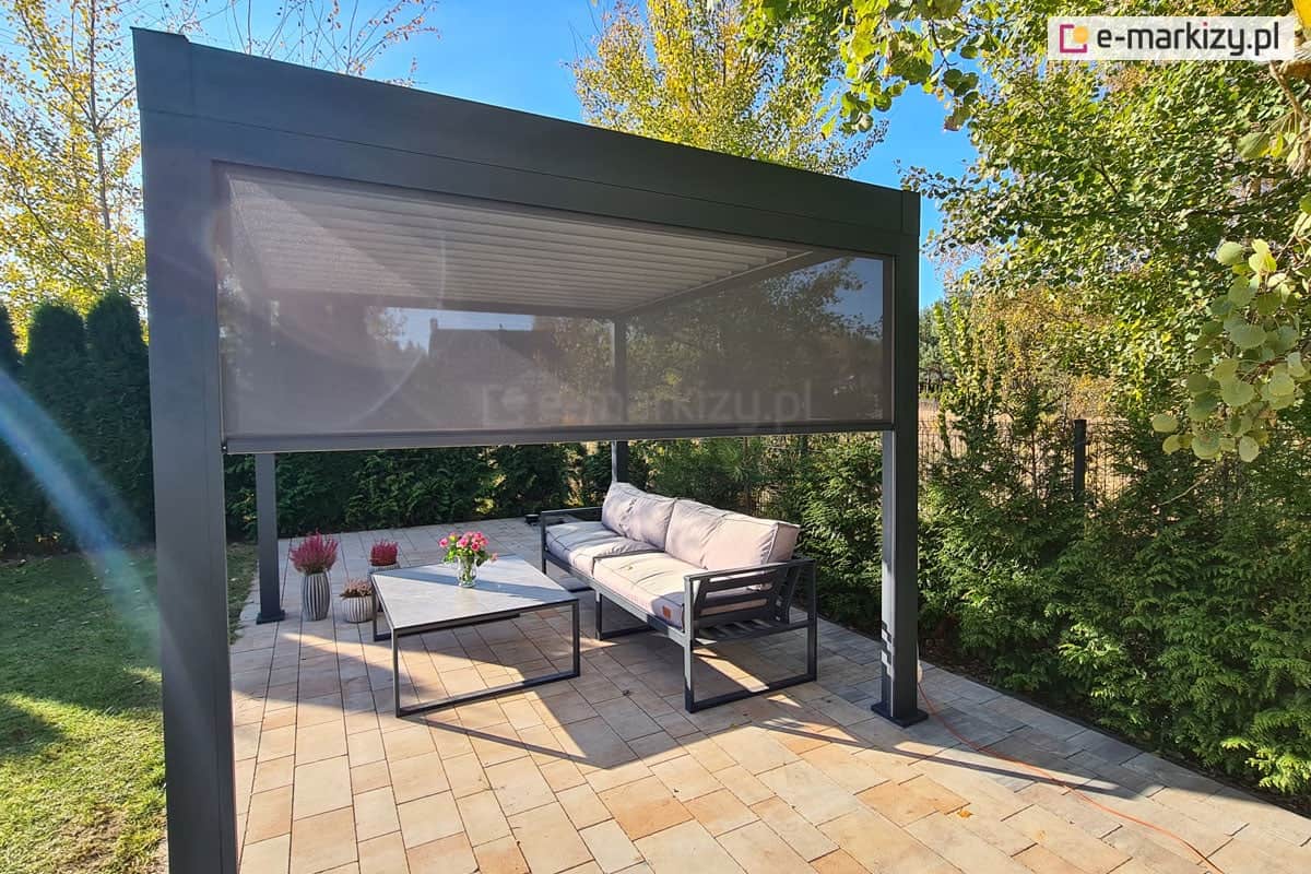 Pergola przyścienna to nie tylko eleganckie zadaszenie tarasu, ale również skuteczna ochrona przed wiatrem oraz nisko operującym słońcem – zarówno o poranku, jak i pod wieczór. Dzięki możliwości zabudowania konstrukcji osłonami ZIP można stworzyć przyjemną, osłoniętą przestrzeń przypominającą ogród zimowy, z której da się korzystać nawet przy niesprzyjającej pogodzie.