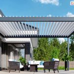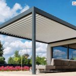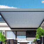 Dach Pergoli Bioline z zamkniętymi lamelami chroni przed deszczem i słońcem