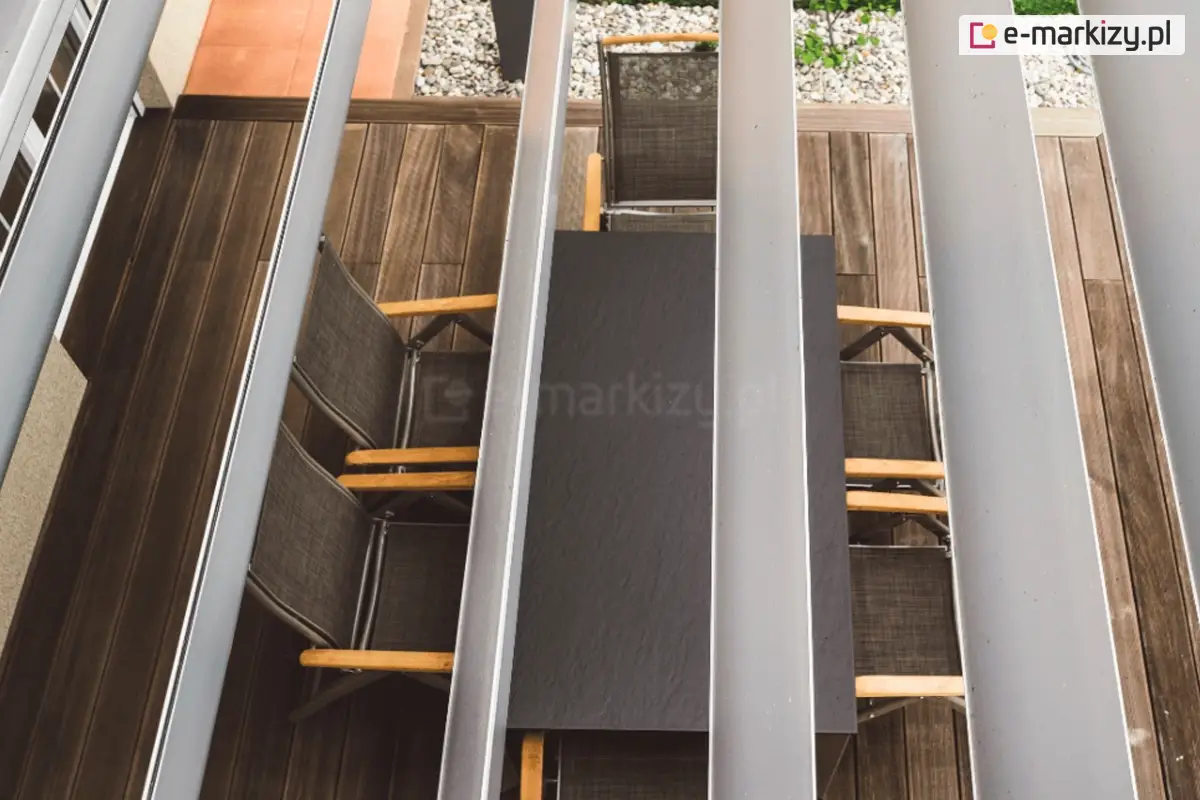 Takie rozwiązanie pozwala w pełni wykorzystać potencjał pergoli przez cały rok. Osłonięty front lub boczne ściany zapewniają więcej prywatności i komfortu, a jednocześnie chronią taras przed deszczem i chłodem. Niezależnie od wybranego typu zabudowy, pergola Gloria tworzy harmonijną całość z bryłą budynku, stając się funkcjonalnym przedłużeniem domowej przestrzeni wypoczynkowej.